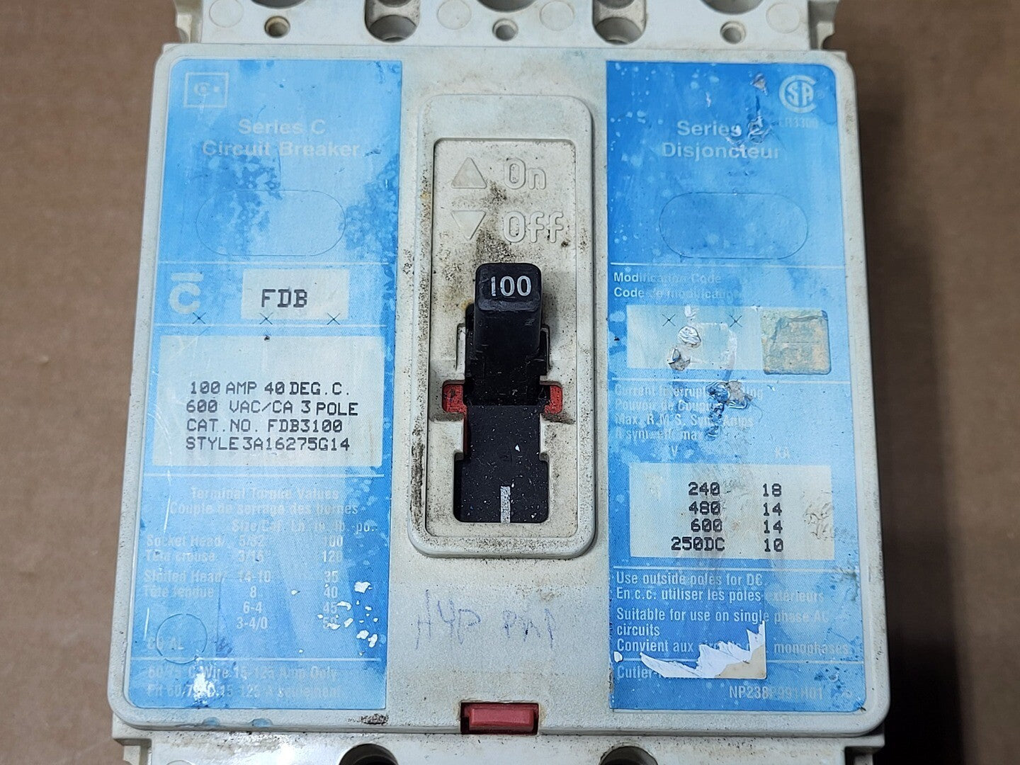 100 Amp 3 Pole 600 Volts Circuit Breaker FDB3100