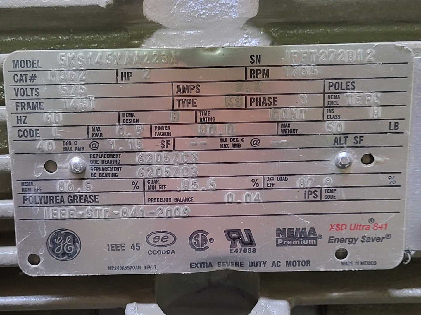 2 hp, 575 volts, 1735 rpm, 145T, Electric Motor M362, 5KS145XAA223A