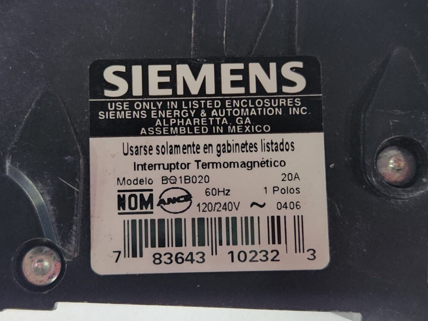 20 Amp, 1 Pole, 120/240 volts Circuit Breaker BQ1B020