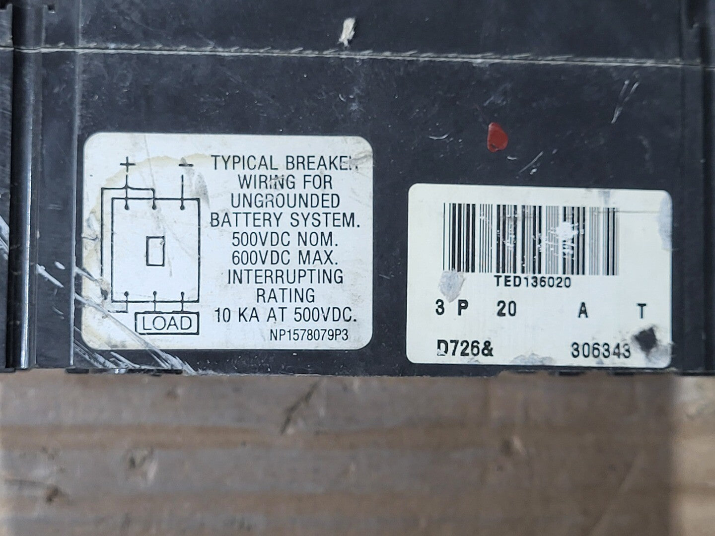 20 Amp, 3 Pole, 600 Volt Circuit Breaker TED136020