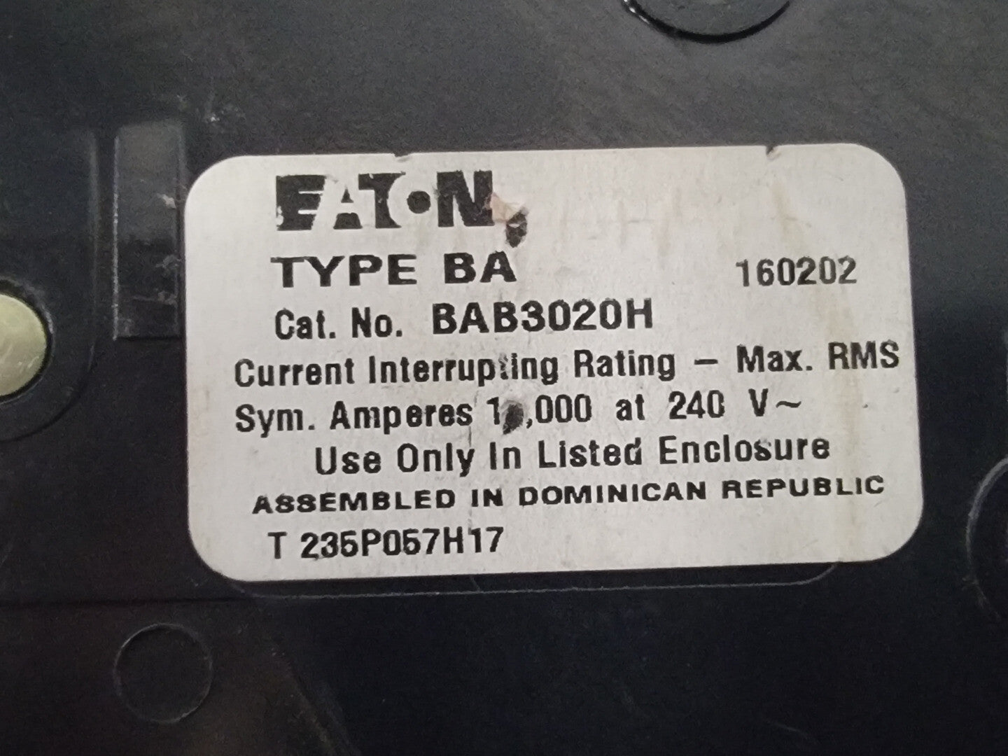 Application: For use in Eaton panelboards and switchboards rated for Type BA breakers