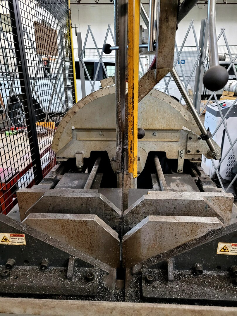 Rectangular Capacity at 90°: 22" H x 18" W Round Capacity at 90°: 17.5" Blade Dimensions: 1.25" x 16'3" Blade Drive: 5.4 hp Blade Speed: 65-385 sfm Coolant Tank Capacity: 12 US gal // 45 liters |
