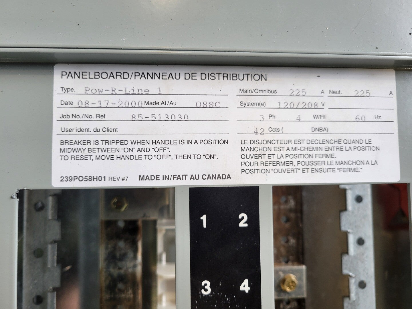 225 Amp, 120/208V, 3Ph, 42 Circuits Panelboard Pow-R-Line 1