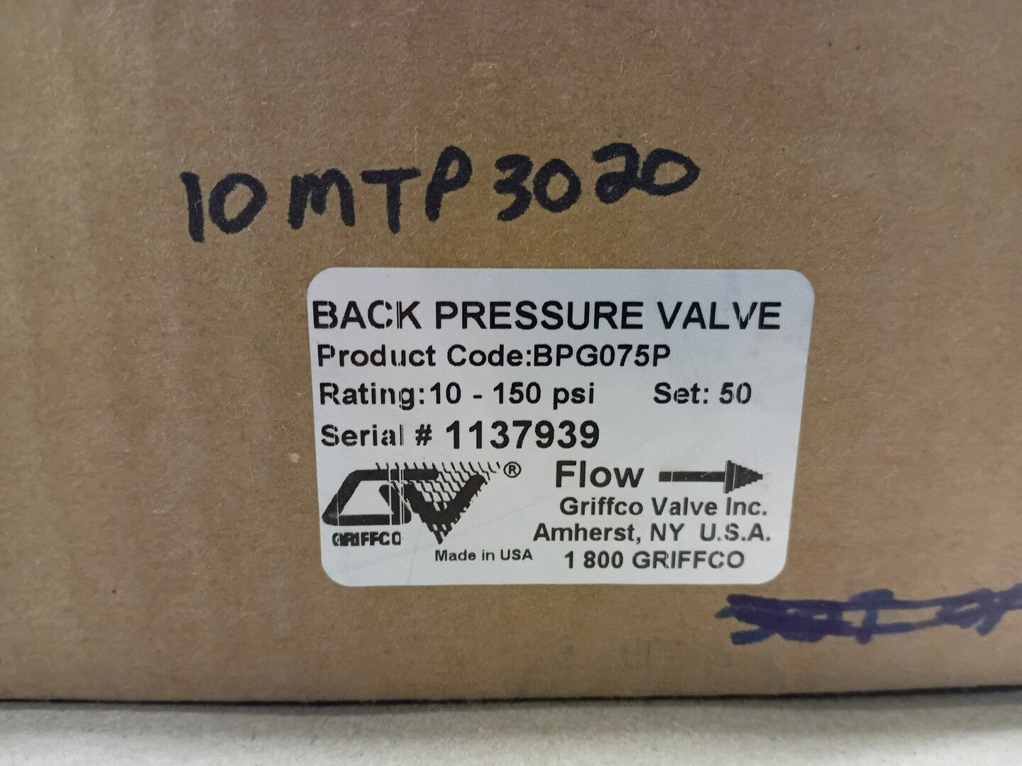 3/4" Back Pressure Valve BPG075P, 10 to 150 PSI