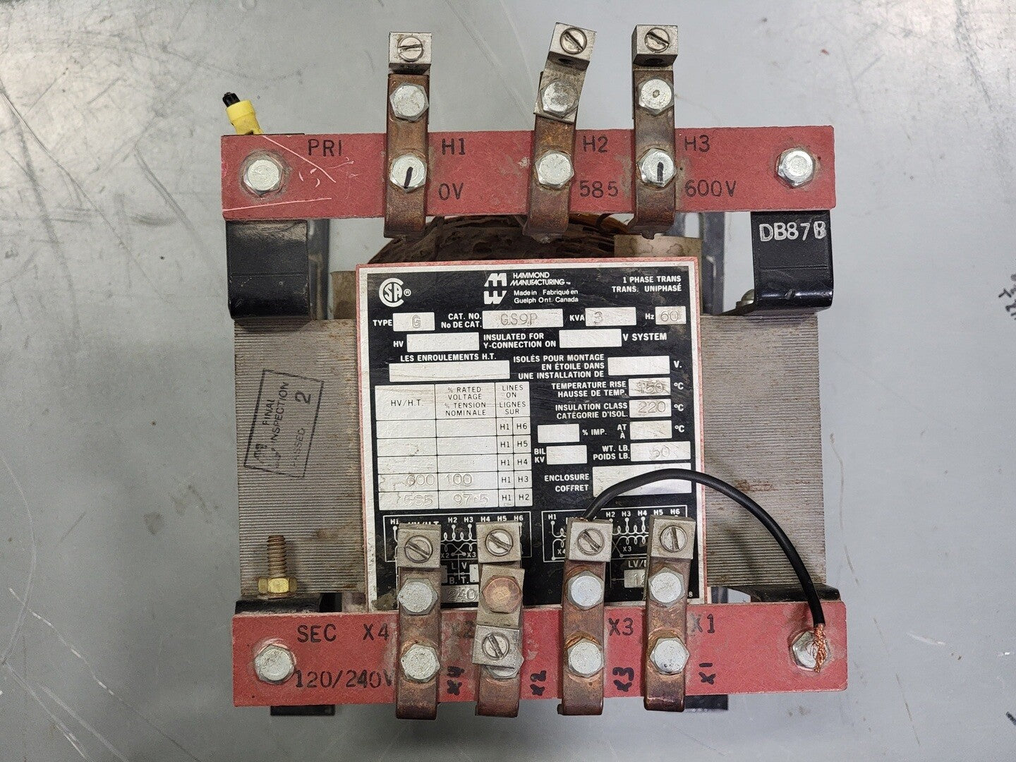 3 kVA Transformer, 600 pri. volts, 120/240 sec. volts GS9P