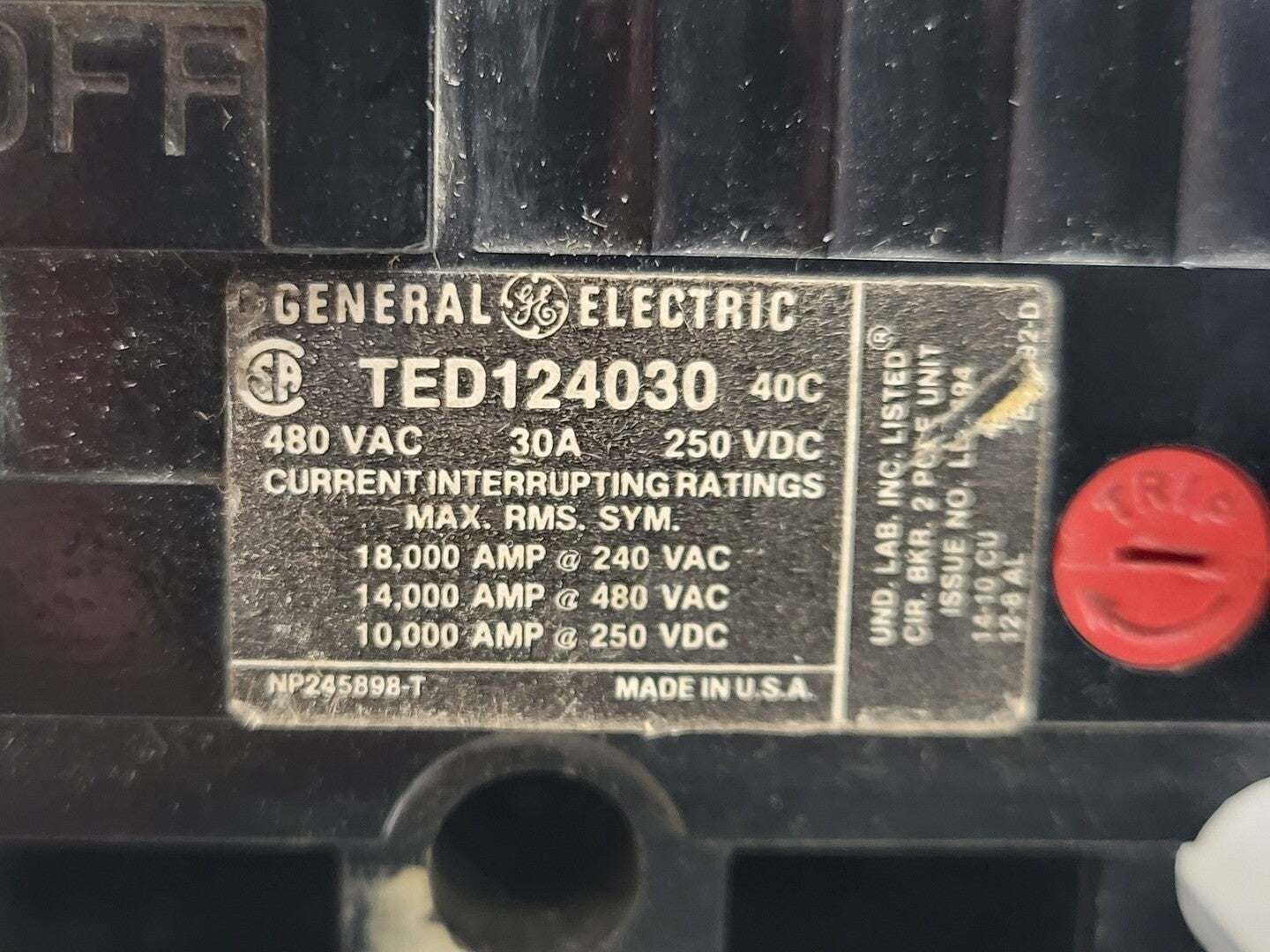 30 Amp, 2 Pole, 480 volts Circuit Breaker TED124030