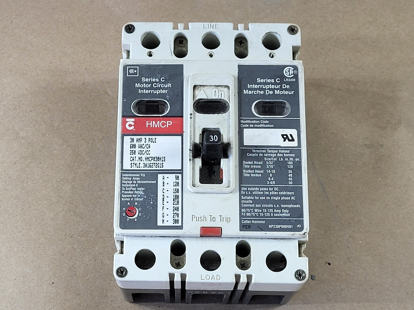 30 Amp, 3 Pole, 600 volts Circuit Breaker HMCP030H1S