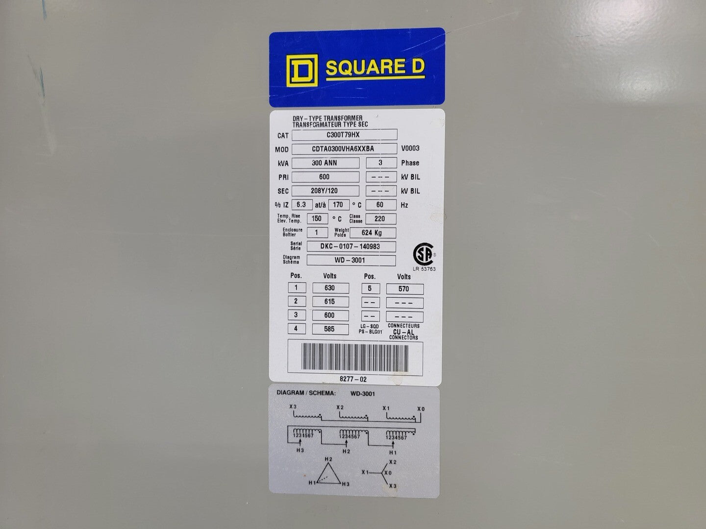 300 kVA Transformer, 600 pri. volts, 208Y/120 sec. volts C300T79HX