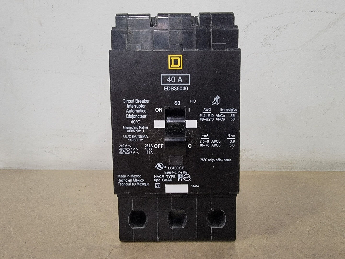 40 Amp, 3 Pole, 600Y/347 Volt Circuit Breaker EDB36040