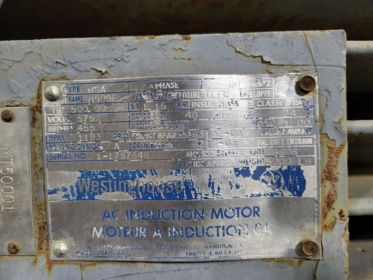 500 hp, 575 Volts, 1193 Rpm, H509E AC Induction Motor