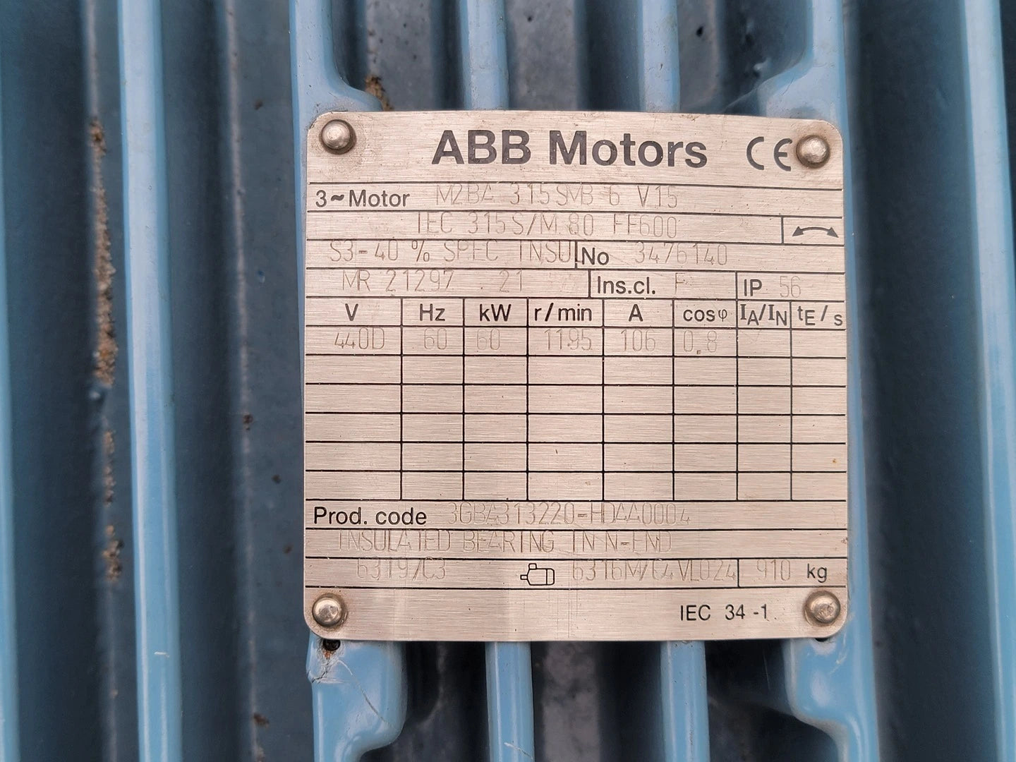 60 kW Cast Iron Motor M2BA315SMB6V15