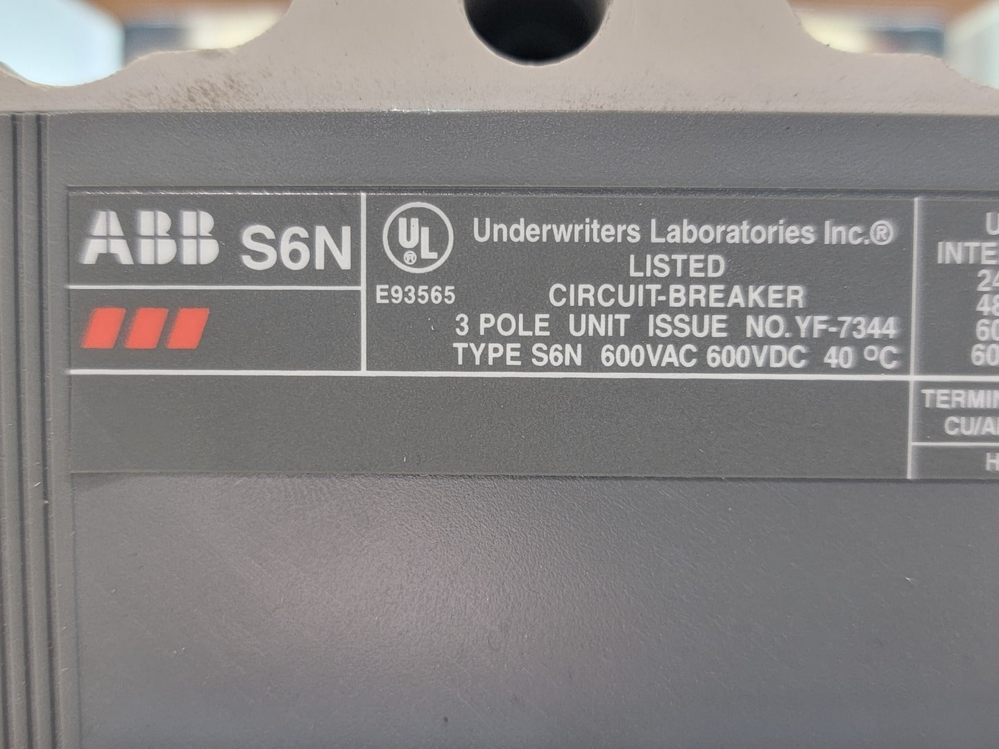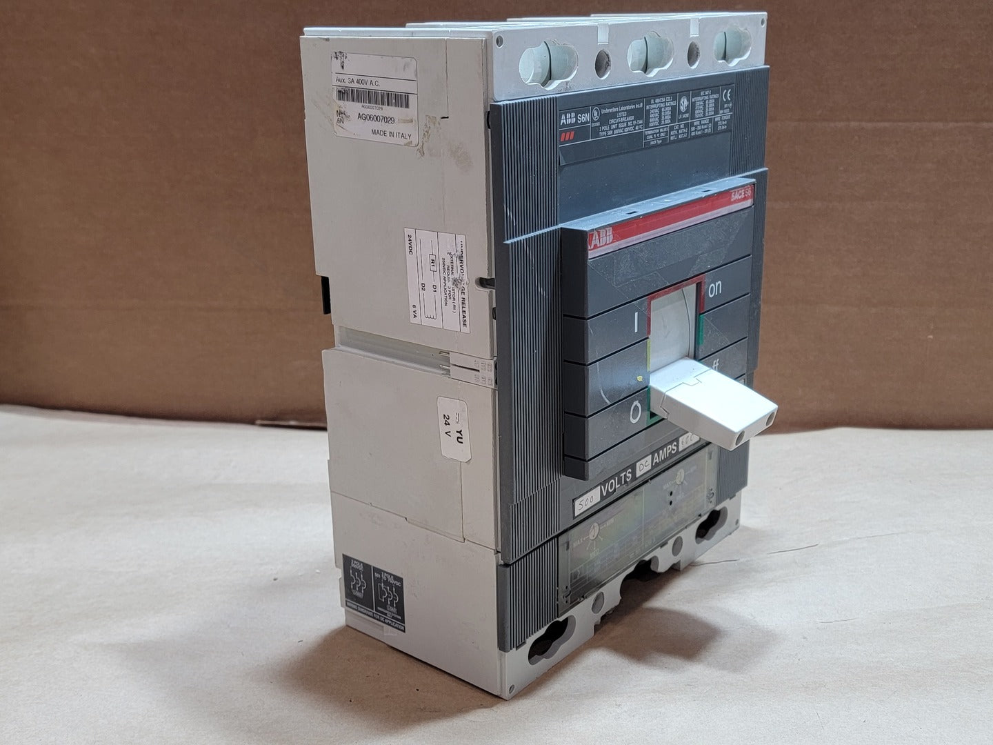 600 Amp, 3 Pole, 500 Volts DC Circuit Breaker SACE S6N