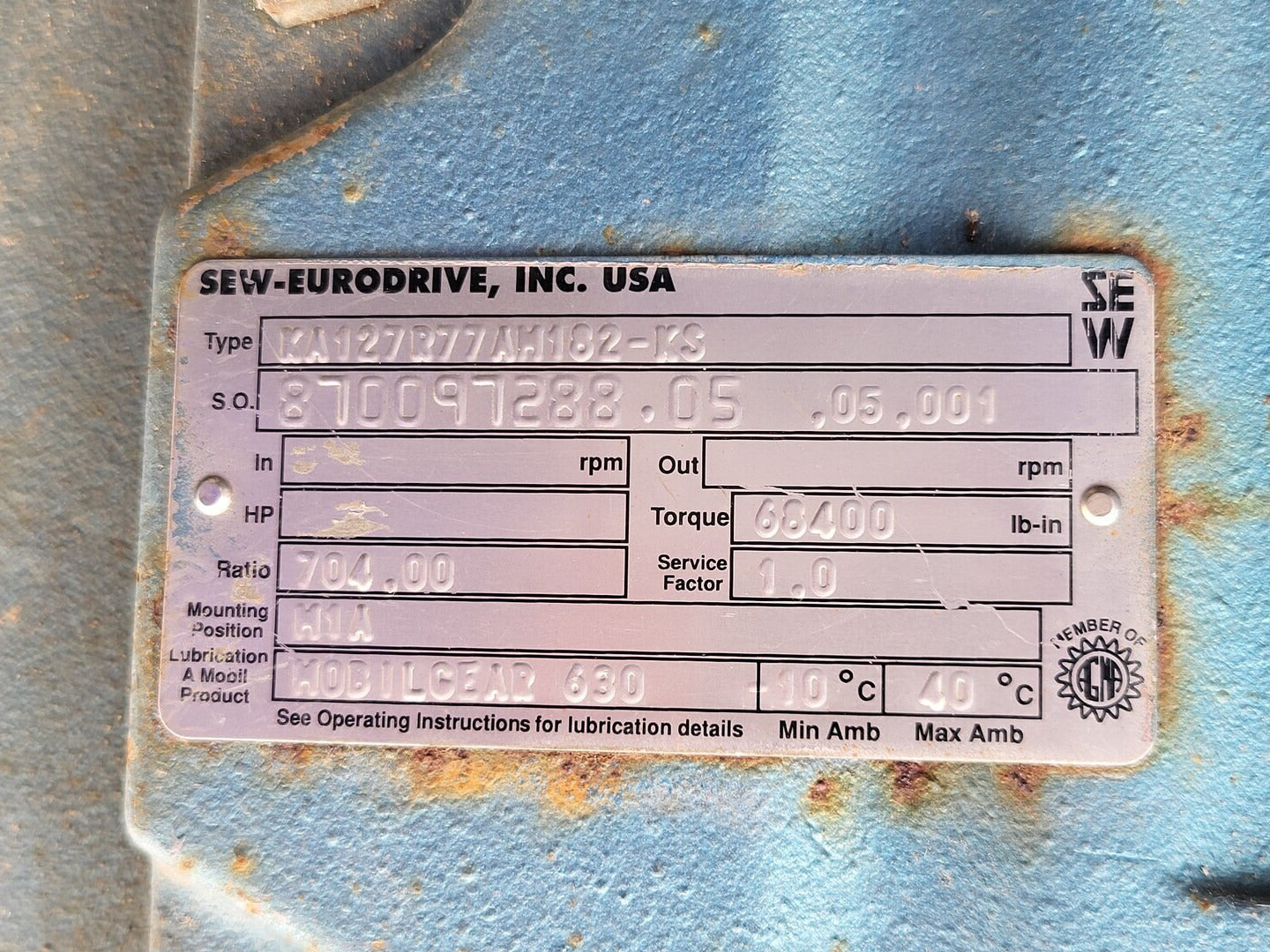 704:1 Ratio Gear Reducer KA127R77AM182-KS w/ 3 hp Electric Motor