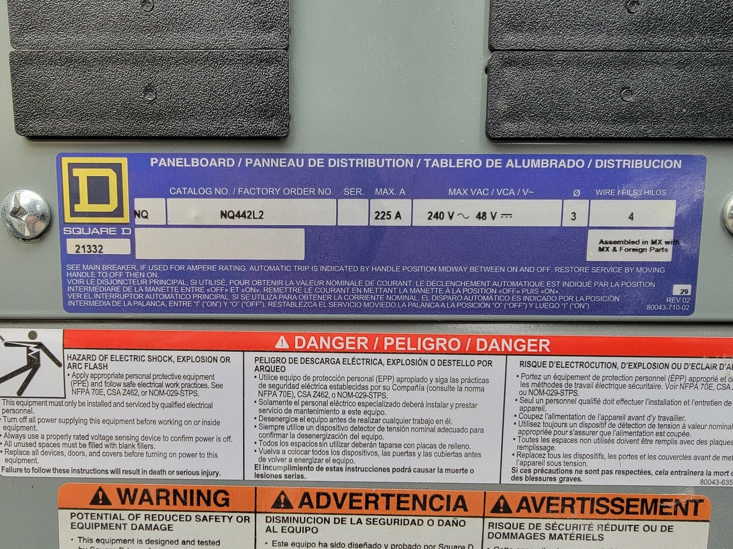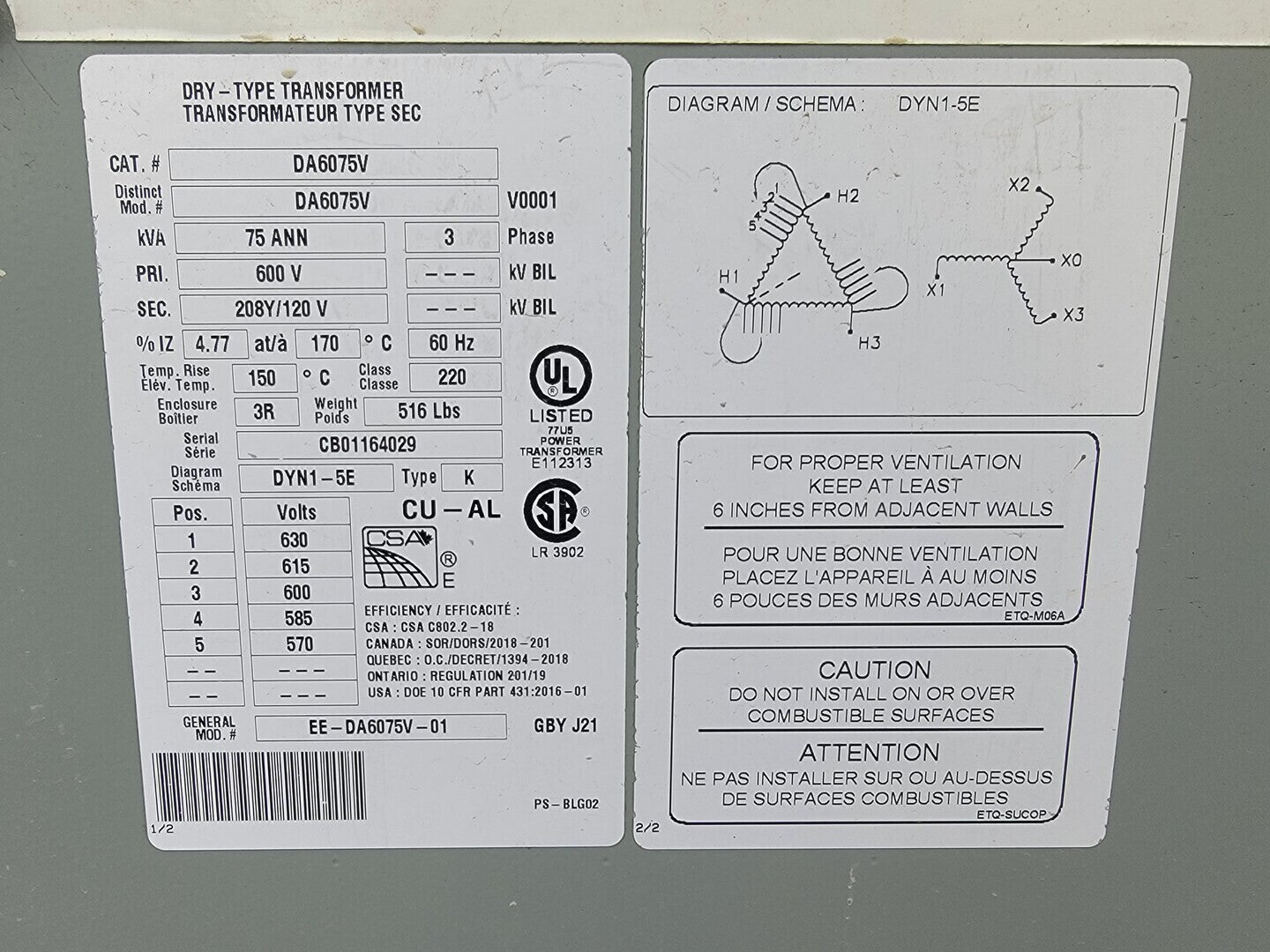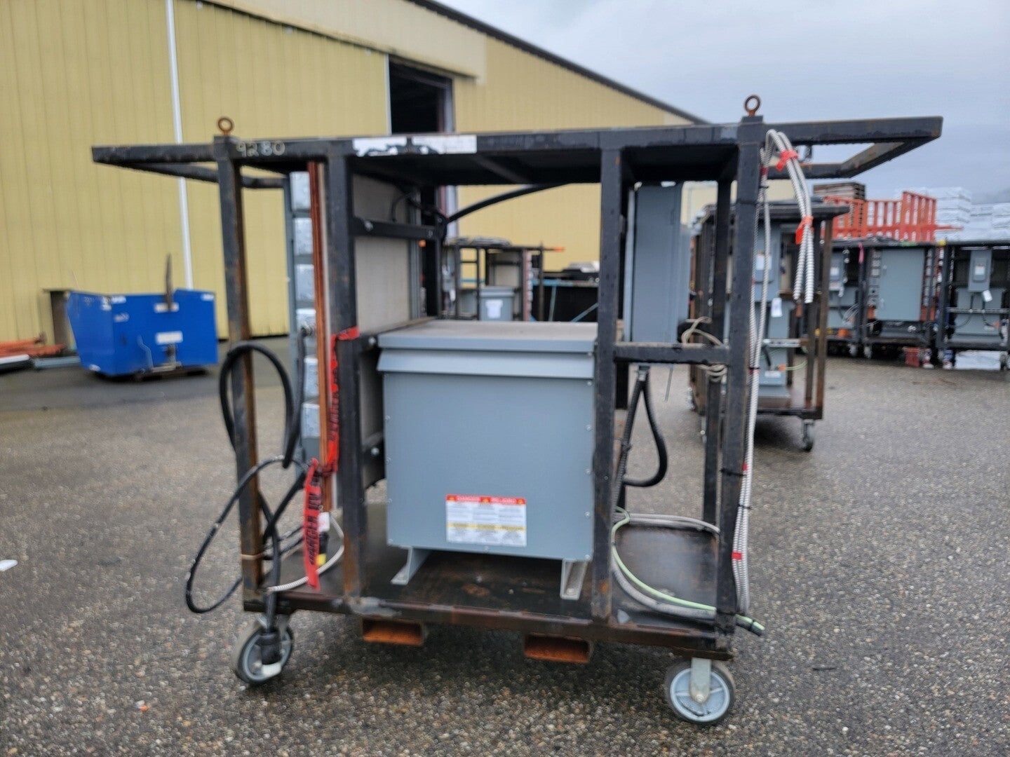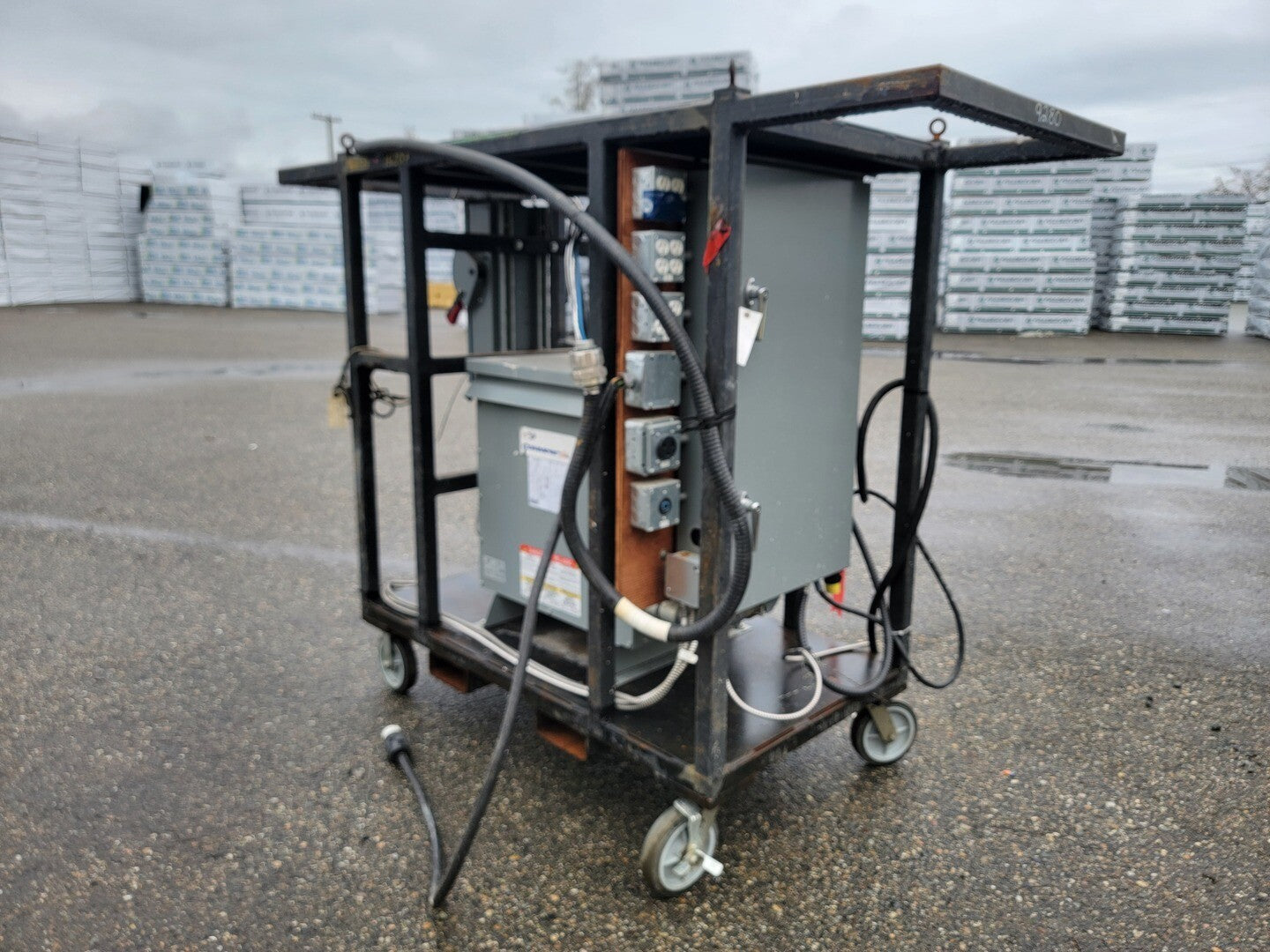 Description: Portable power cart contains a 75 kVA transformer with a 100 Amp disconnect switch and a 225 Amp 42 Circuit Breaker Panelboard. Disconnect Switch Brand: Square D Model: CH363RB Current: 100 A Voltage: 600 V AC/DC Enclosure: Type 3R Panelboard Brand: Square D Model: NQ442L2 Current: 225 A Voltage: 240 VAC / 48 VDC Phase: 3 Wire: 4 Circuits: 42 Enclosure: Type 3R, 5, 12 |