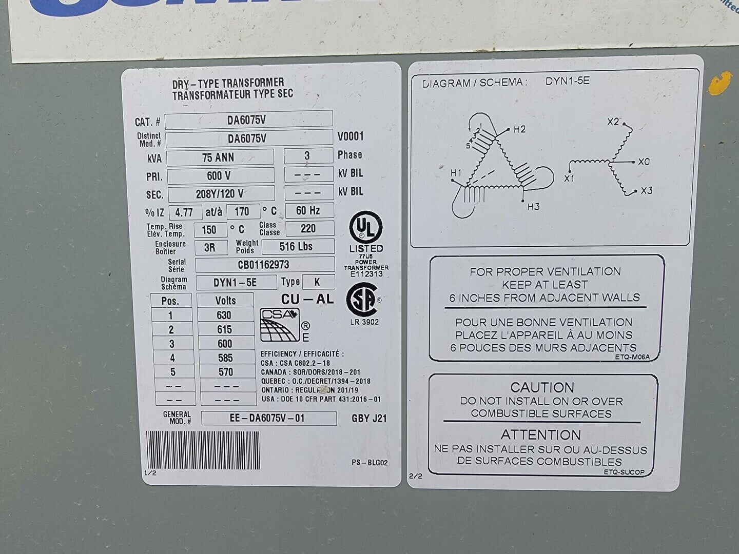 75 kVA Temporary Power Distribution Cart 600V Pri. 208Y/120V Sec.