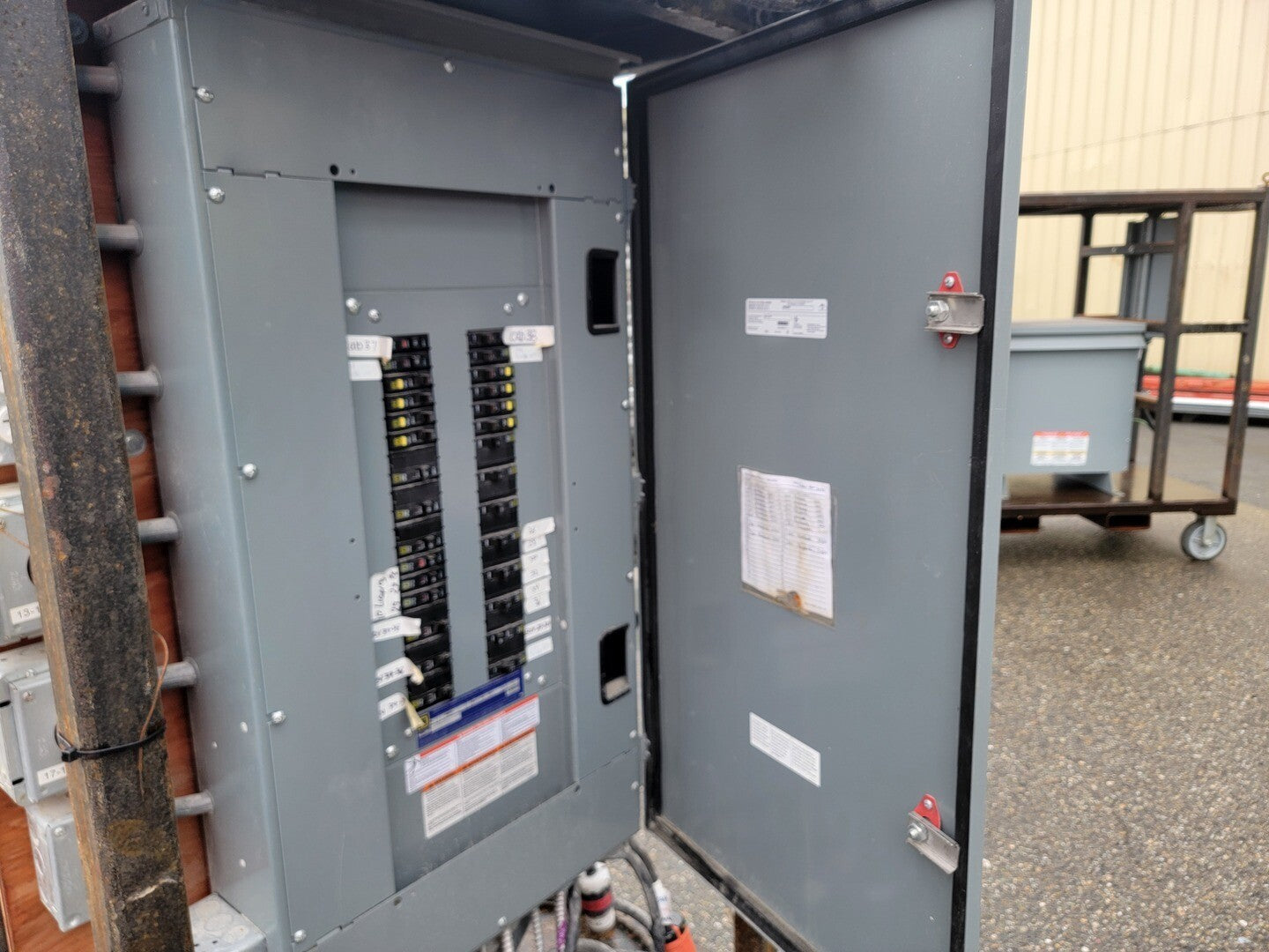 Description: Portable power cart contains a 75 kVA transformer with a 100 Amp disconnect switch and a 225 Amp 42 Circuit Breaker Panelboard.