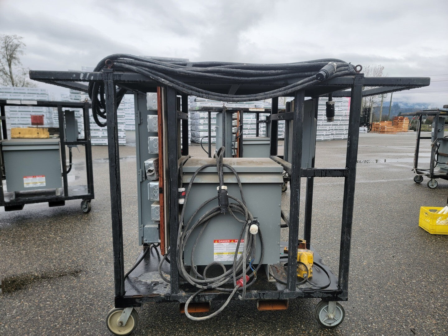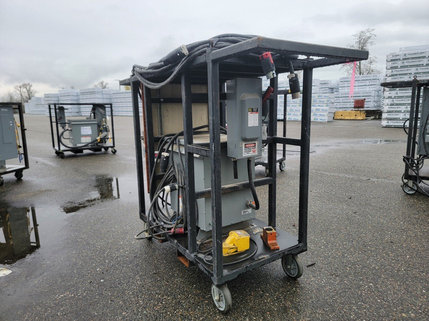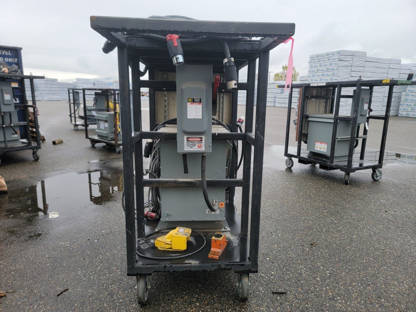 Description: Portable power cart contains a 75 kVA transformer with a 100 Amp disconnect switch and a 225 Amp 42 Circuit Breaker Panelboard. Disconnect Switch Brand: Square D Model: CH363RB Current: 100 A Voltage: 600 V AC/DC Enclosure: Type 3R Panelboard Brand: Square D Model: NQ442L2 Current: 225 A Voltage: 240 VAC / 48 VDC Phase: 3 Wire: 4 Circuits: 42 Enclosure: Type 3R, 5, 12 |
