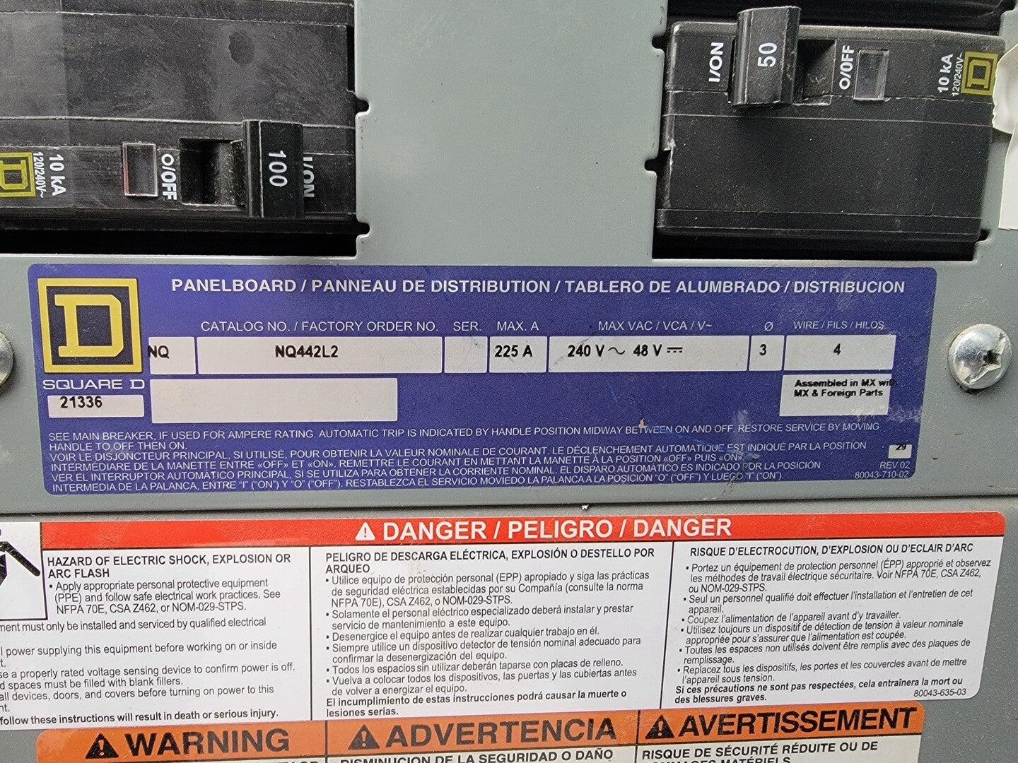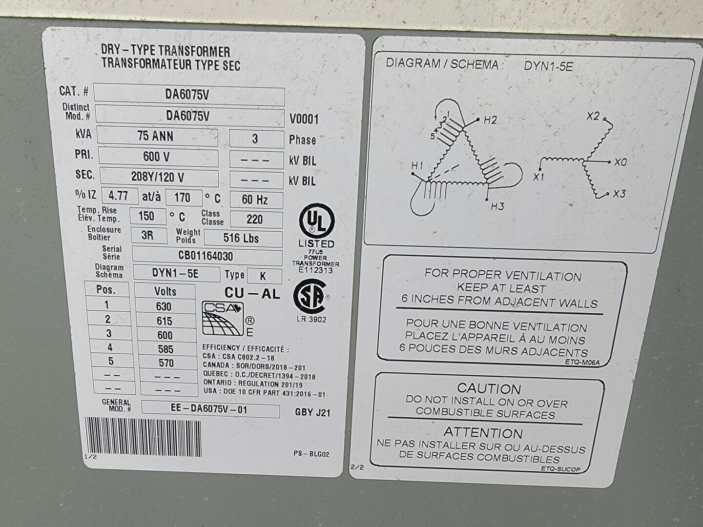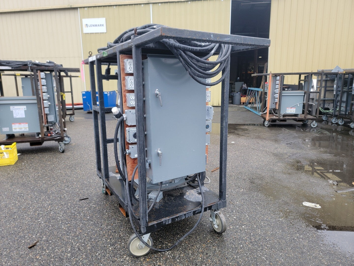 Description: Portable power cart contains a 75 kVA transformer with a 100 Amp disconnect switch and a 225 Amp 42 Circuit Breaker Panelboard. Disconnect Switch Brand: Square D Model: CH363RB Current: 100 A Voltage: 600 V AC/DC Enclosure: Type 3R Panelboard Brand: Square D Model: NQ442L2 Current: 225 A Voltage: 240 VAC / 48 VDC Phase: 3 Wire: 4 Circuits: 42 Enclosure: Type 3R, 5, 12 |