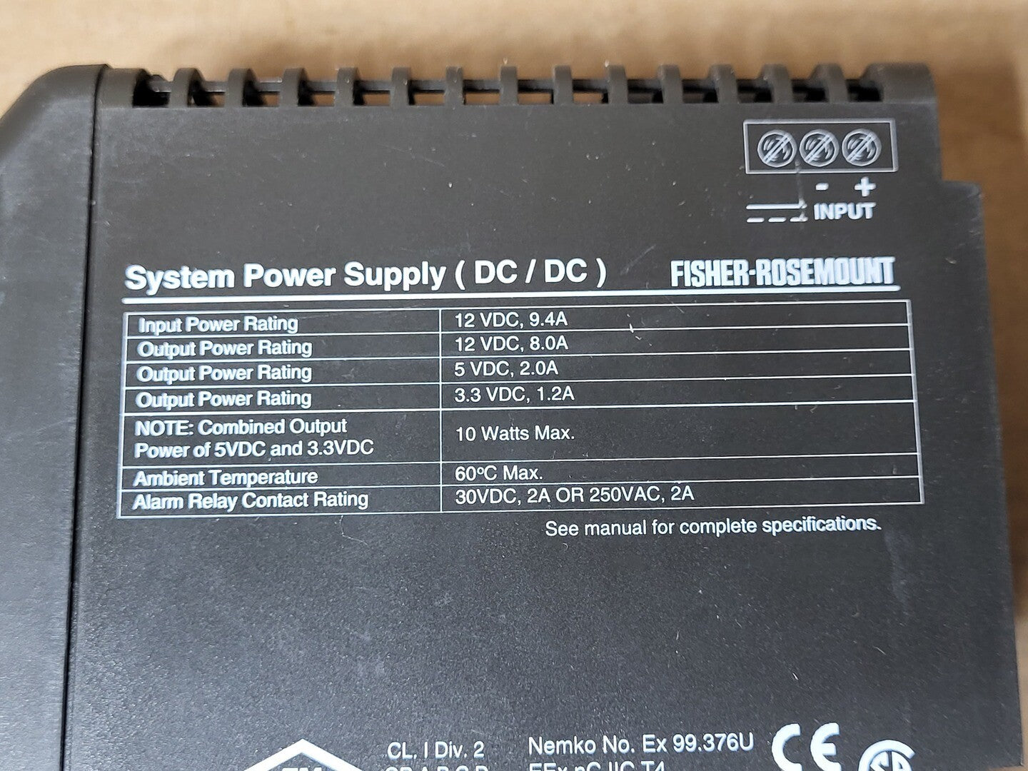 Input power rating: 12 VDC, 9.4 amps