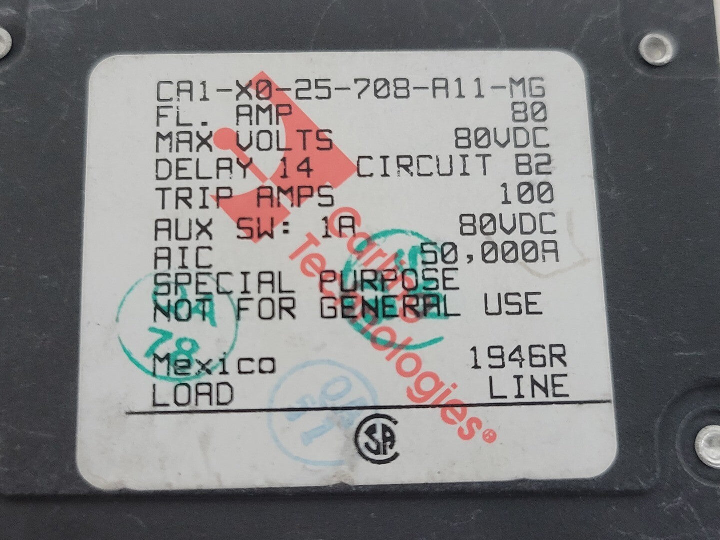 80 Amp, 1 Pole, 80 volts Circuit Breaker CA1-X0-25-708-A11-MG