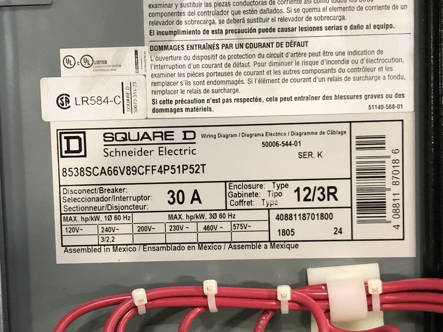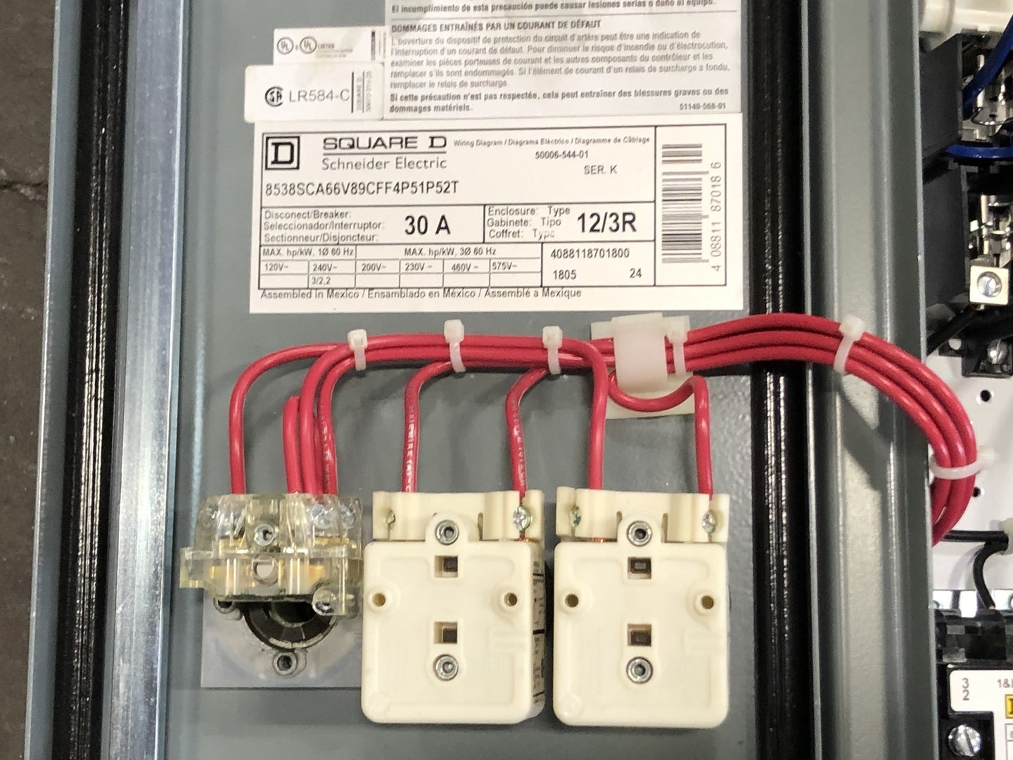 30 Amp, 3 Pole Fusible Disconnect Switch 8538SCA66V89 w/ Motor Starter 8536SCO1S