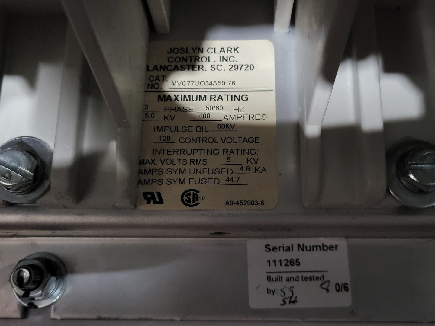 Short Circuit Current: 50 kA rms symmetrical