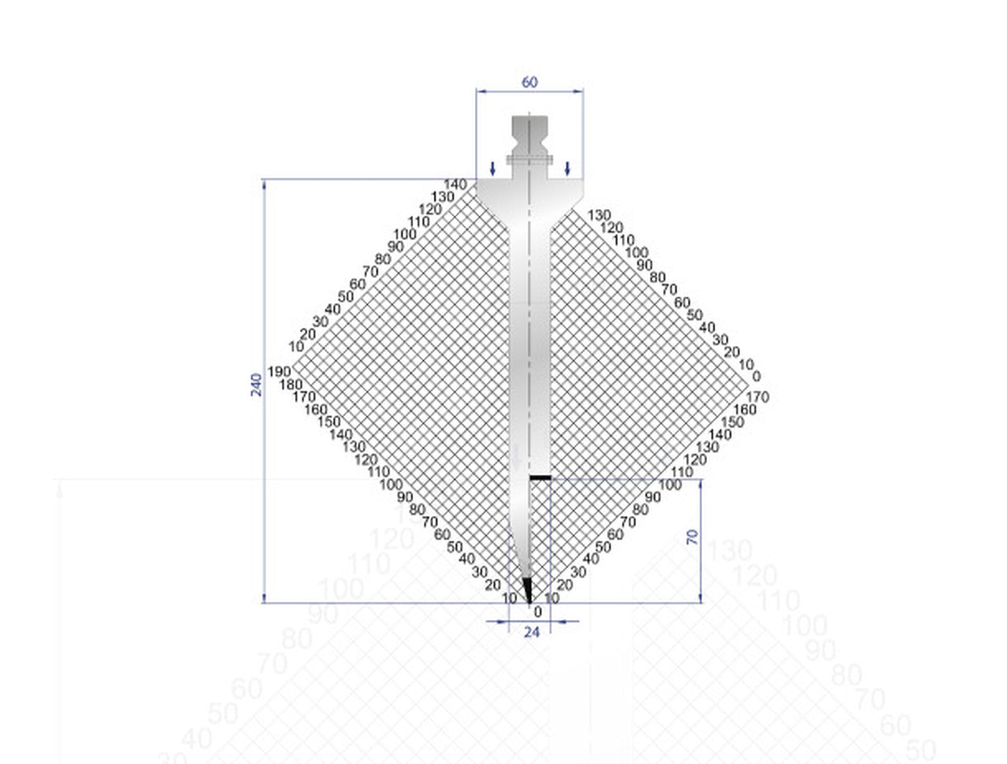 Part No. 1295 @ 100mm Right Horn 28 Degree Hemming Die Straight Punch