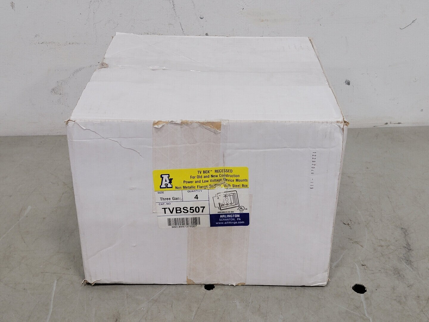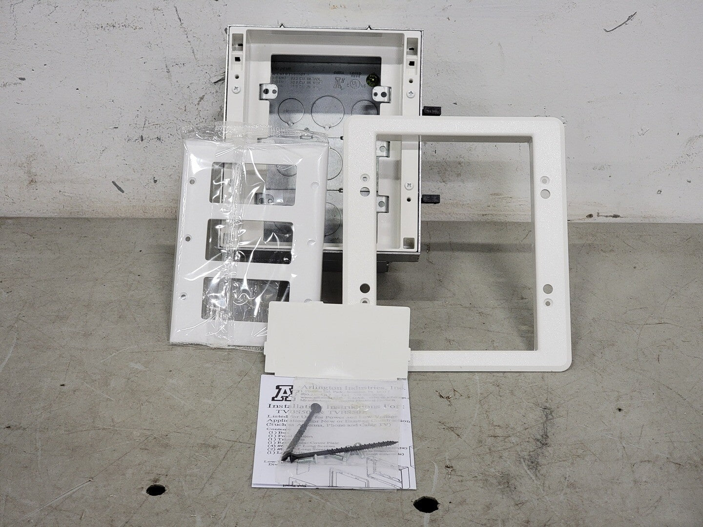 Recessed Outlet Wall Plate Kit, 3-Gang, White TVBS507 (Box of 4)