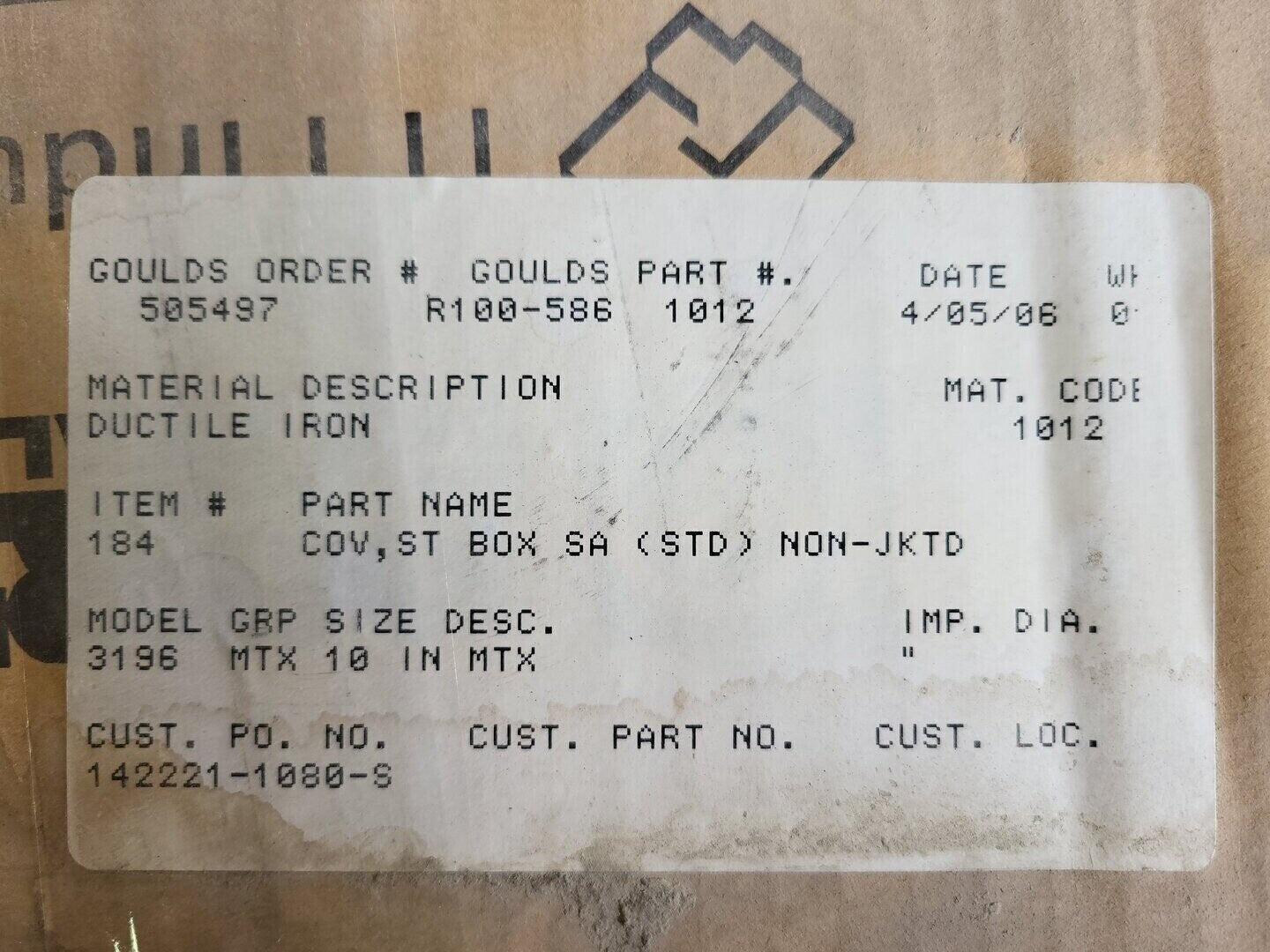 Stuffing Box Cover Plate R100-586 1012 for 3196MTX