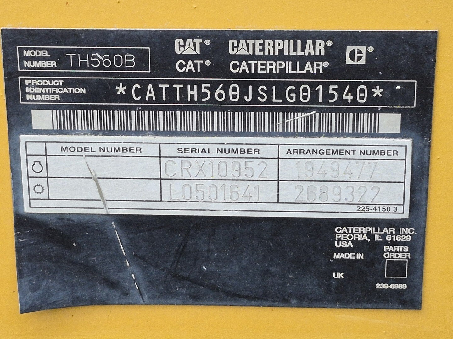Product Identification Number: CATTH560JSLG01540