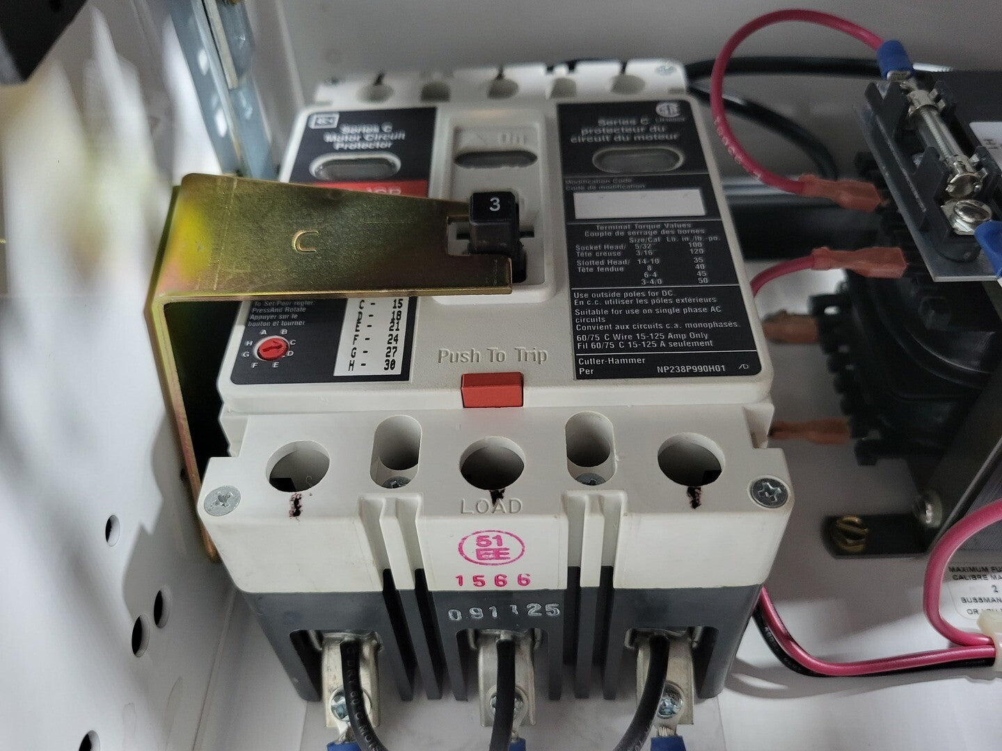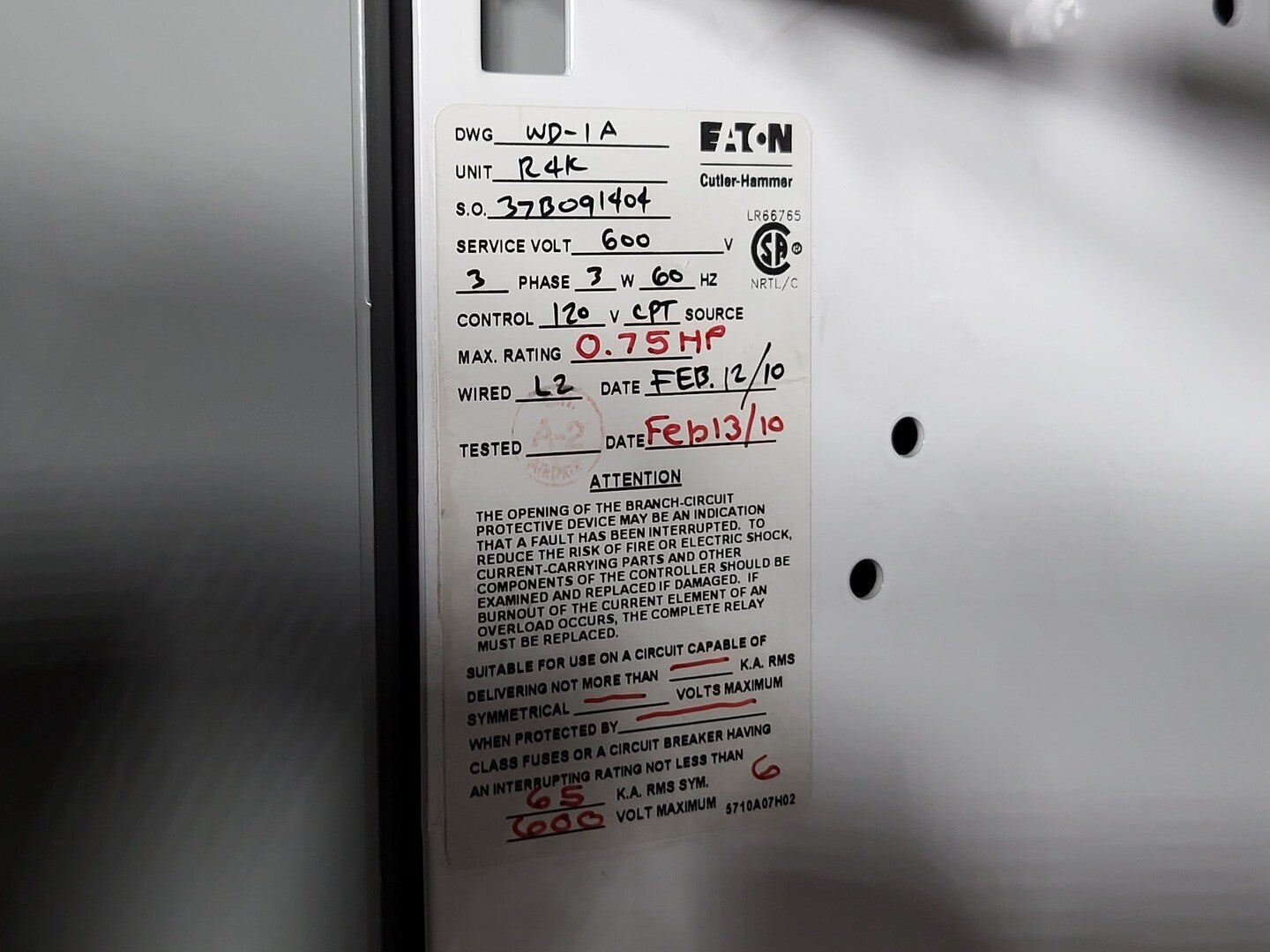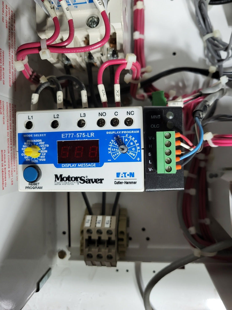 **Fits 2100 MCC Frame Circuit Breaker Maker: Eaton Model: HMCP Voltage: 600V Amps: 3 amps Poles: 3 Ground Fault Relay Maker: Eaton Model: D64RPB30 Overload relay: 24-240 Vac/dc Motor Saver Electronic Overload Relay Maker: Eaton Model: E777-575-LR Voltage: 450-600VAC Phase: 3 Transformer Maker: MCi Model: 5576-14-120-00 VA: 150VA Primary: 600V Secondary: 120V Devicenet Module Maker: Eaton Model: EC10-120-DN Inputs: 115VAC |