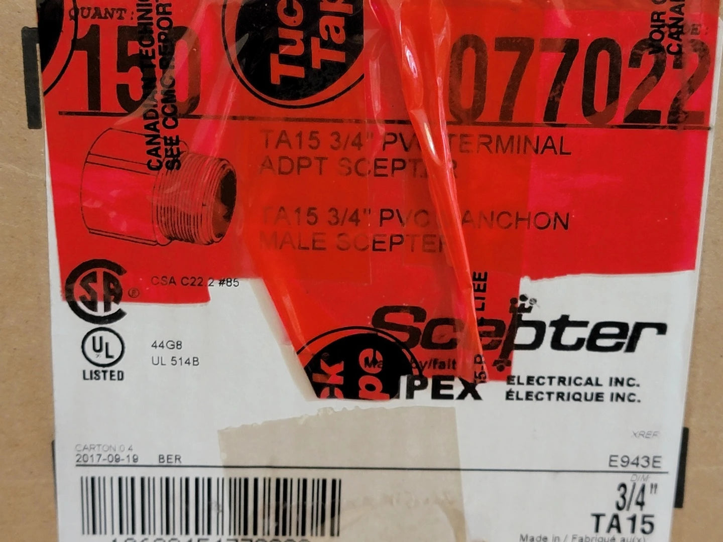 Adaptador de terminal de PVC de 1/2" TA10 (Caja de 165)