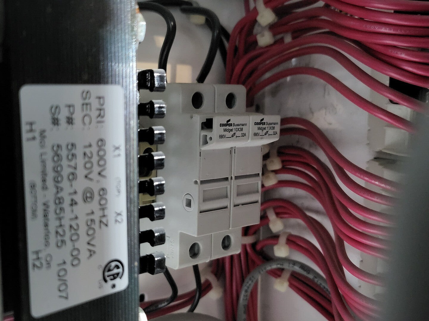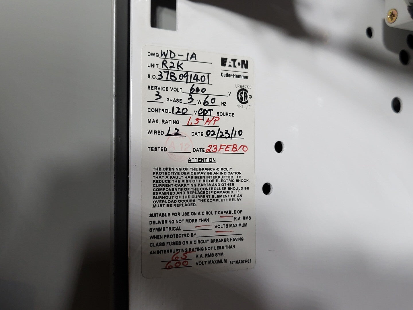 **Fits 2100 MCC Frame Circuit Breaker Maker: Eaton Model: HMCP Voltage: 600V Amps: 7amps Poles: 3 Ground Fault Relay Maker: Eaton Model: D64RPB30 Overload relay: 24-240 Vac/dc Motor Saver Electronic Overload Relay Maker: Eaton Model: E777-575-LR Voltage: 450-600VAC Phase: 3 Transformer Maker: MCi Model: 5576-14-120-00 VA: 150VA Primary: 600V Secondary: 120V Devicenet Module Maker: Eaton Model: EC10-120-DN Inputs: 115VAC |