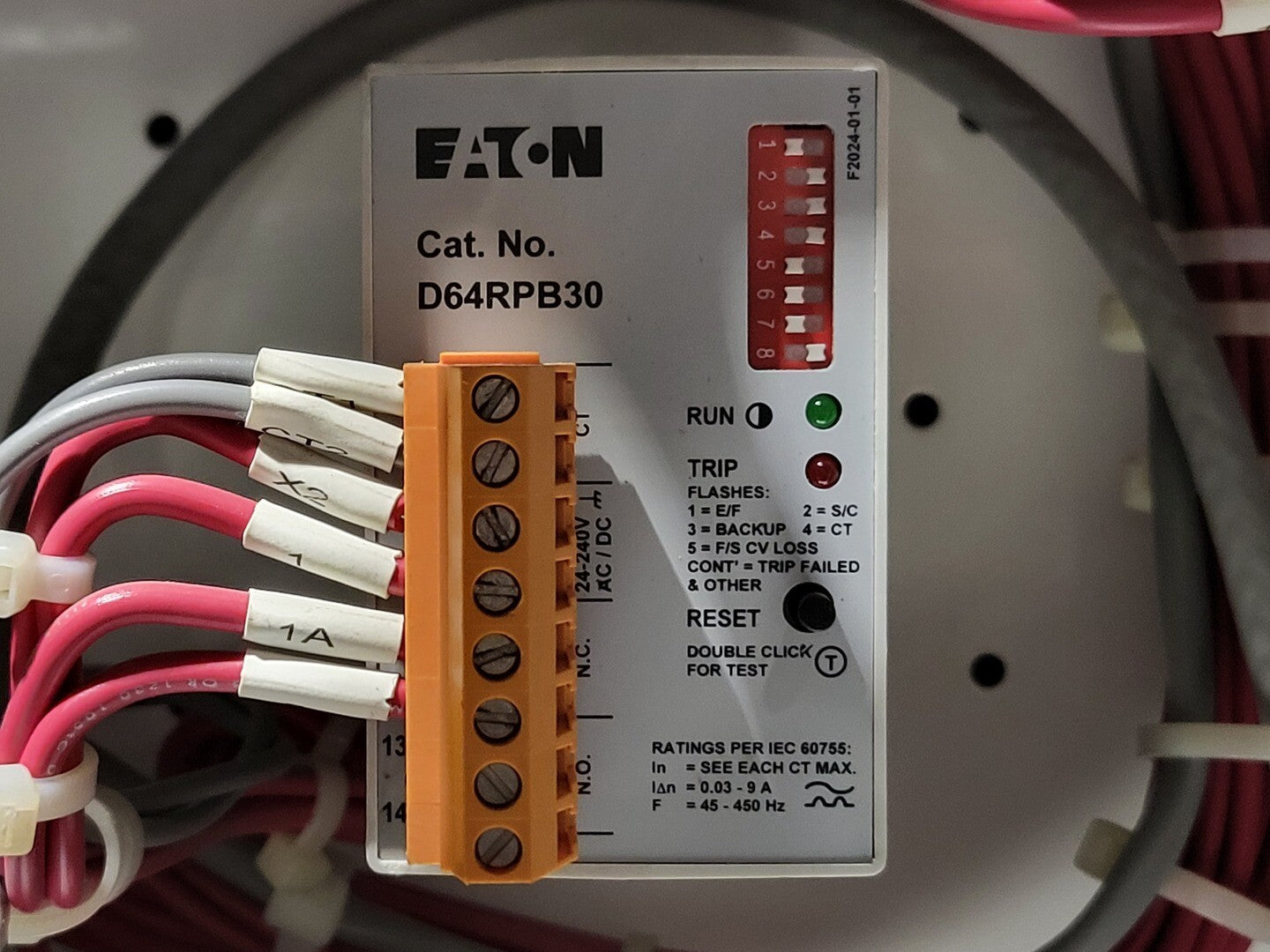 **Fits 2100 MCC Frame Circuit Breaker Maker: Eaton Model: HMCP Voltage: 600V Amps: 7 amps Poles: 3 Ground Fault Relay Maker: Eaton Model: D64RPB30 Overload relay: 24-240 Vac/dc Motor Saver Electronic Overload Relay Maker: Eaton Model: E777-575-LR Voltage: 450-600VAC Phase: 3 Transformer Maker: MCi Model: 5576-14-120-00 VA: 150VA Primary: 600V Secondary: 120V Devicenet Module Maker: Eaton Model: EC10-120-DN Inputs: 115VAC Contactor Maker: Eaton Model: CN15DN3 Amp: 27 Size: NEMA 1 |