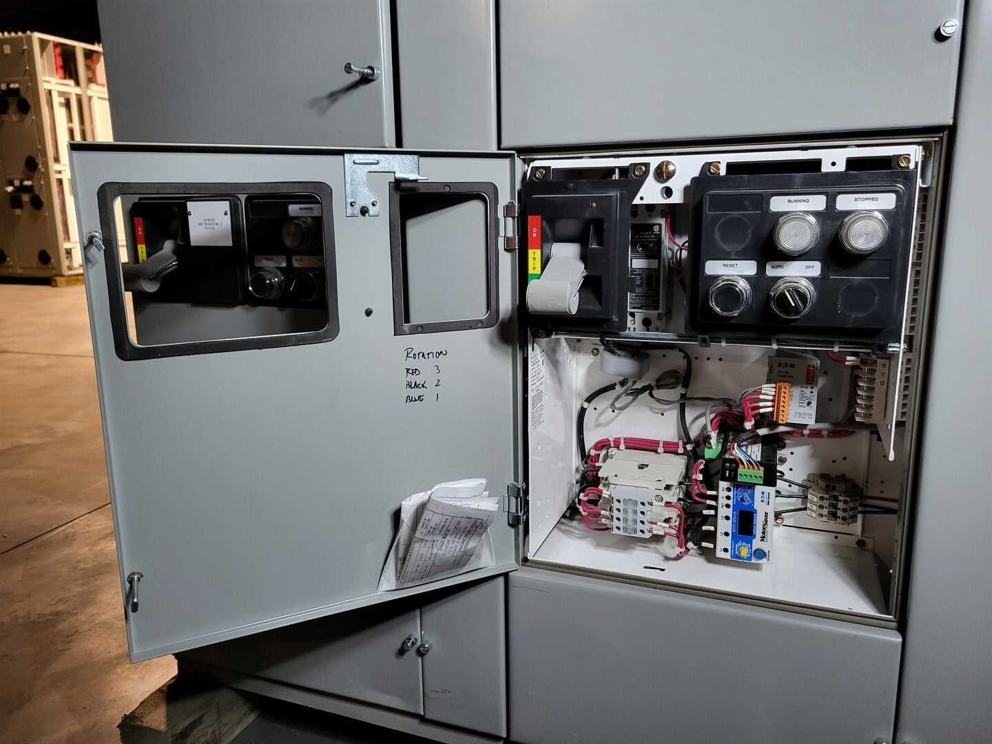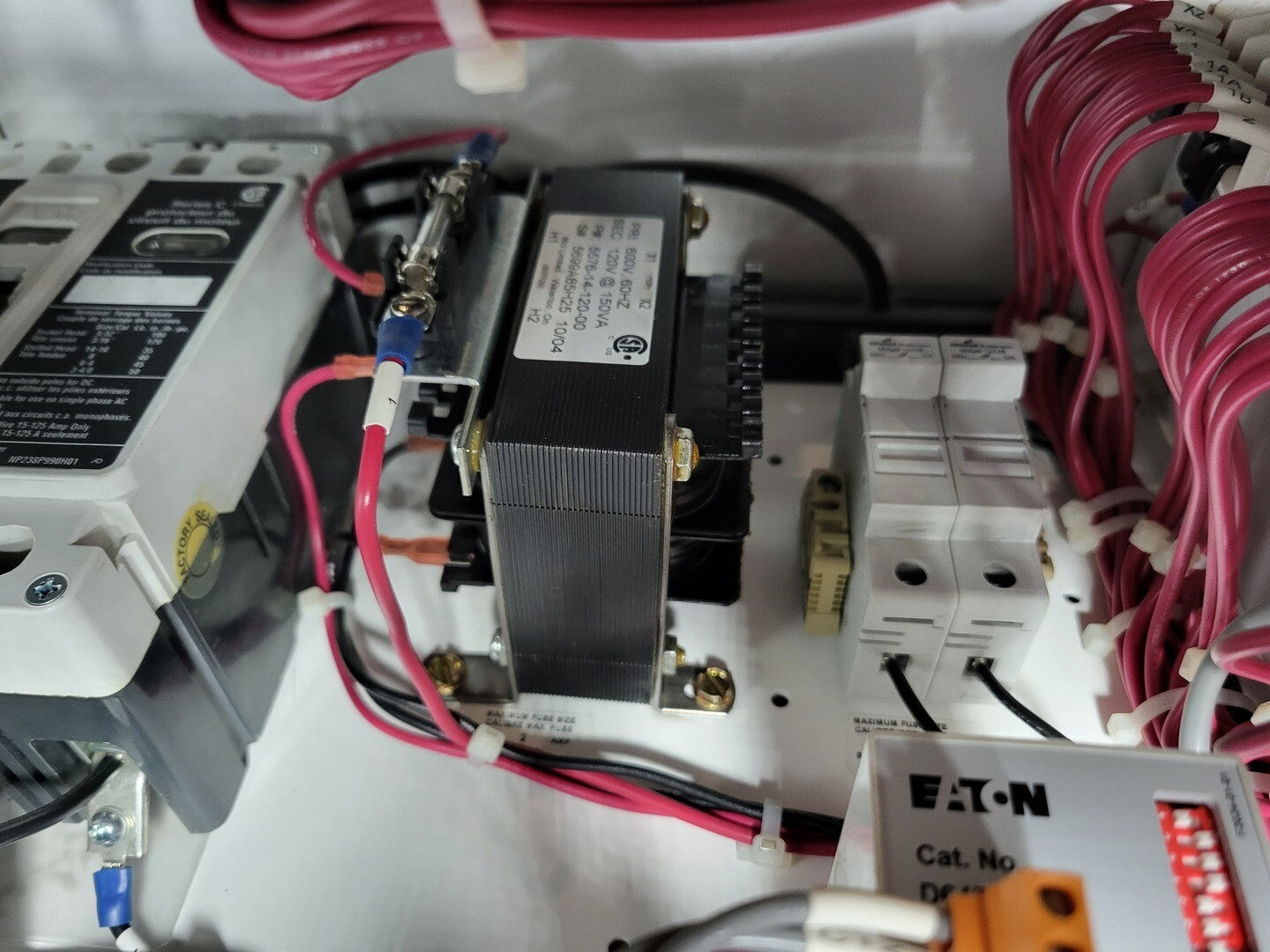 **Fits 2100 MCC Frame Circuit Breaker Maker: Eaton Model: HMCP Voltage: 600V Amps: 7 amps Poles: 3 Ground Fault Relay Maker: Eaton Model: D64RPB30 Overload relay: 24-240 Vac/dc Motor Saver Electronic Overload Relay Maker: Eaton Model: E777-575-LR Voltage: 450-600VAC Phase: 3 Transformer Maker: MCi Model: 5576-14-120-00 VA: 150VA Primary: 600V Secondary: 120V Devicenet Module Maker: Eaton Model: EC10-120-DN Inputs: 115VAC |