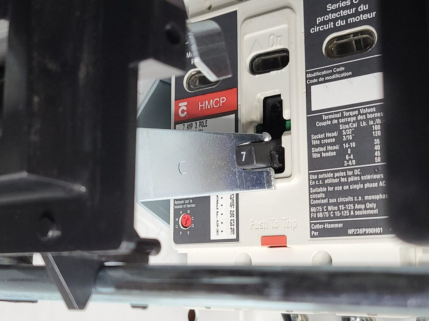 **Fits 2100 MCC Frame Circuit Breaker Maker: Eaton Model: HMCP Voltage: 600V Amps: 7 amps Poles: 3 Ground Fault Relay Maker: Eaton Model: D64RPB30 Overload relay: 24-240 Vac/dc Motor Saver Electronic Overload Relay Maker: Eaton Model: E777-575-LR Voltage: 450-600VAC Phase: 3 Transformer Maker: MCi Model: 5576-14-120-00 VA: 150V Primary: 600V Secondary: 120V |