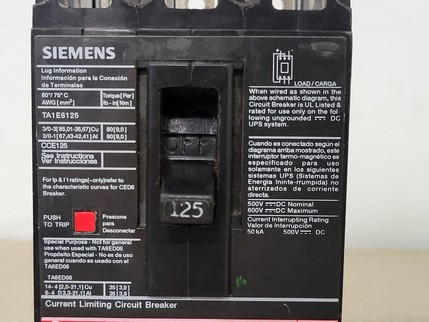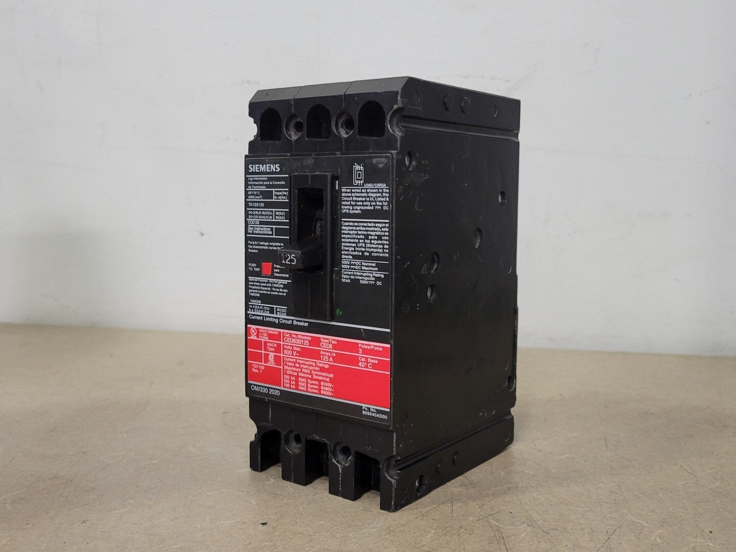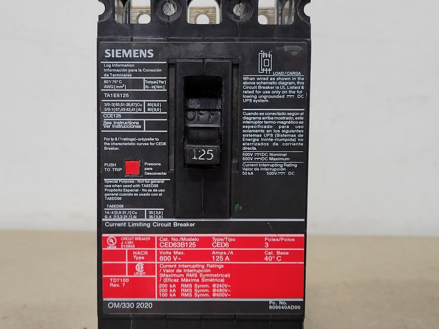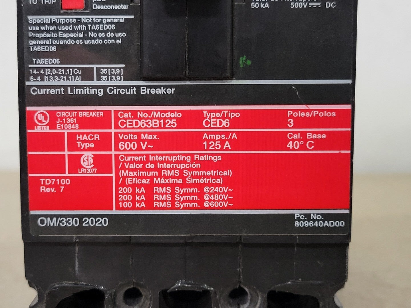 125 Amp, 3 Pole, 600 Volt Circuit Breaker CED63B125