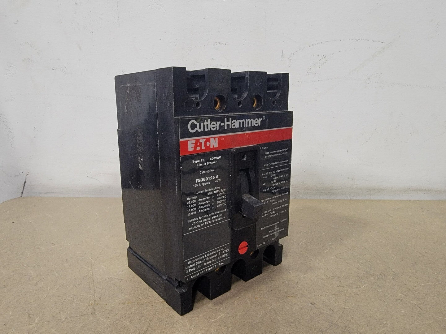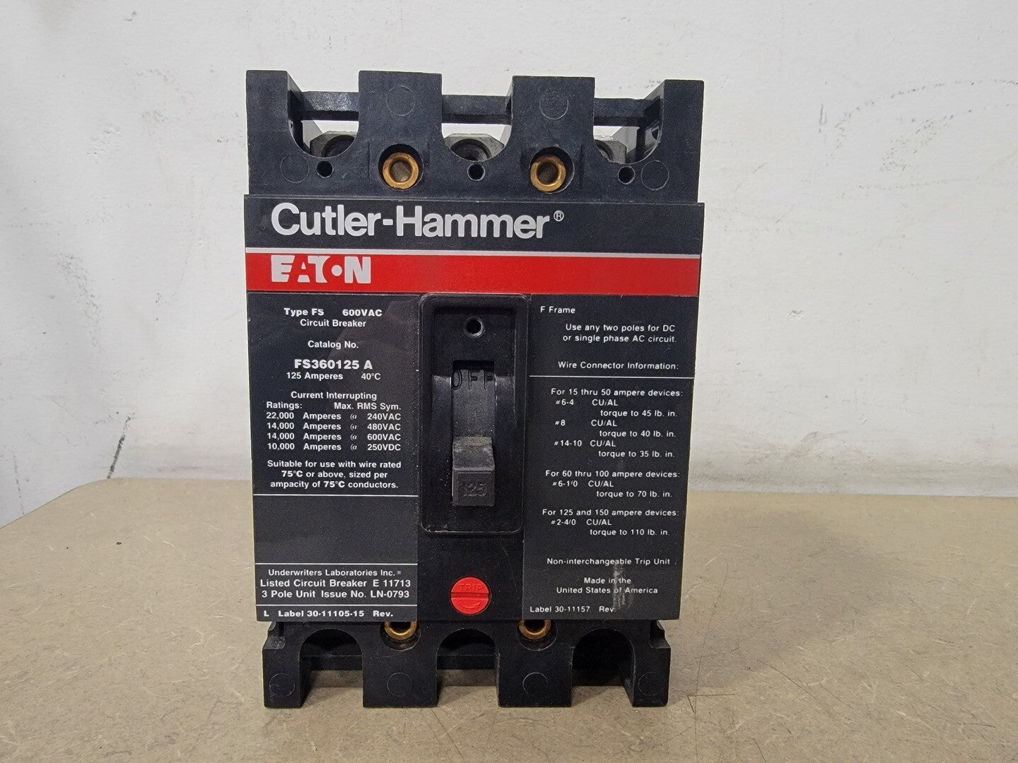 125 Amp 600 Volts 3 Pole Circuit Breaker FS360125A