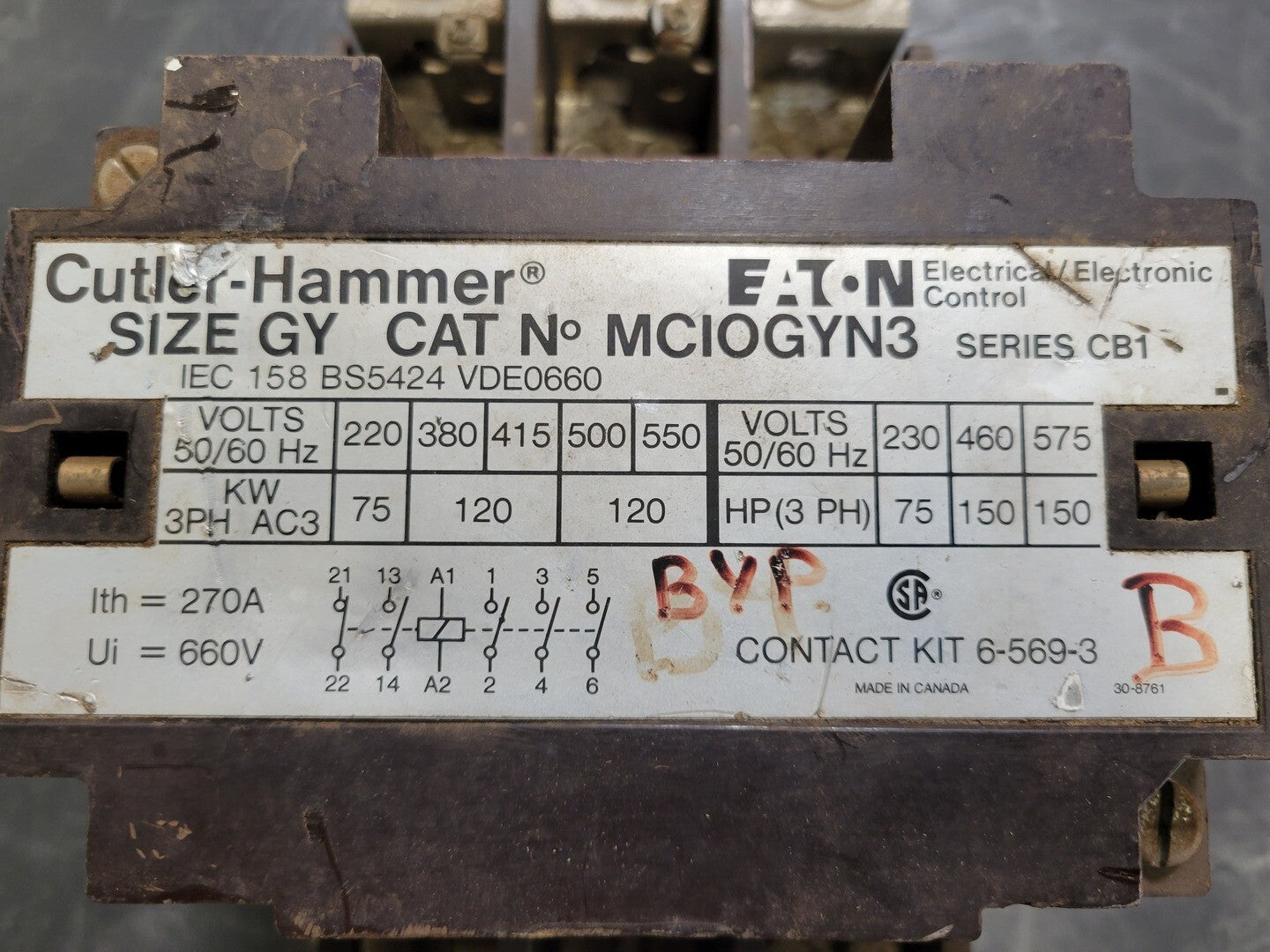 Contactor de inversión MCIOGYN3 de 150 hp, 270 amperios y 575 voltios
