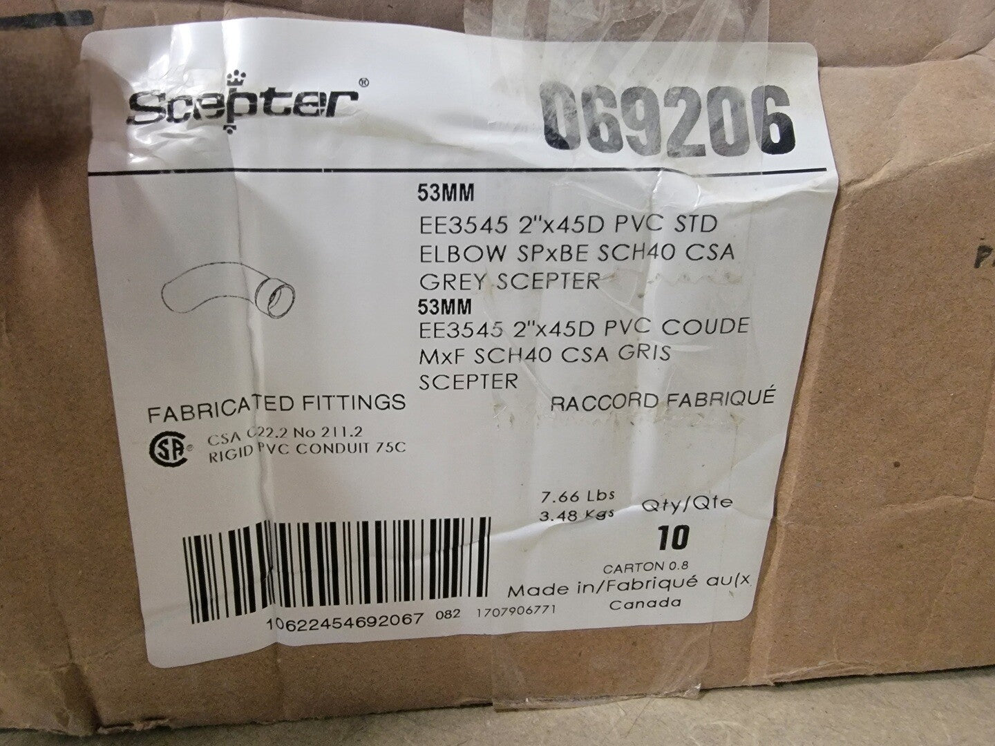 2" 45 Deg PVC Standard Elbow SCH40, 069206, EE3545 (Box of 10)