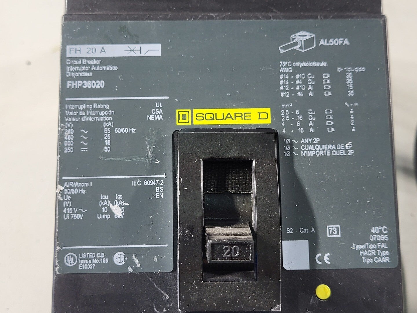 20 Amp, 3 Pole, 600 volts Circuit Breaker FHP36020