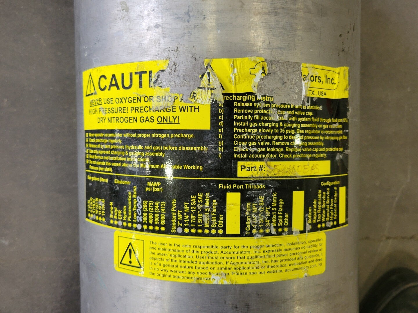 ** Nunca use oxígeno ni aire comprimido. Precargar únicamente con gas nitrógeno seco