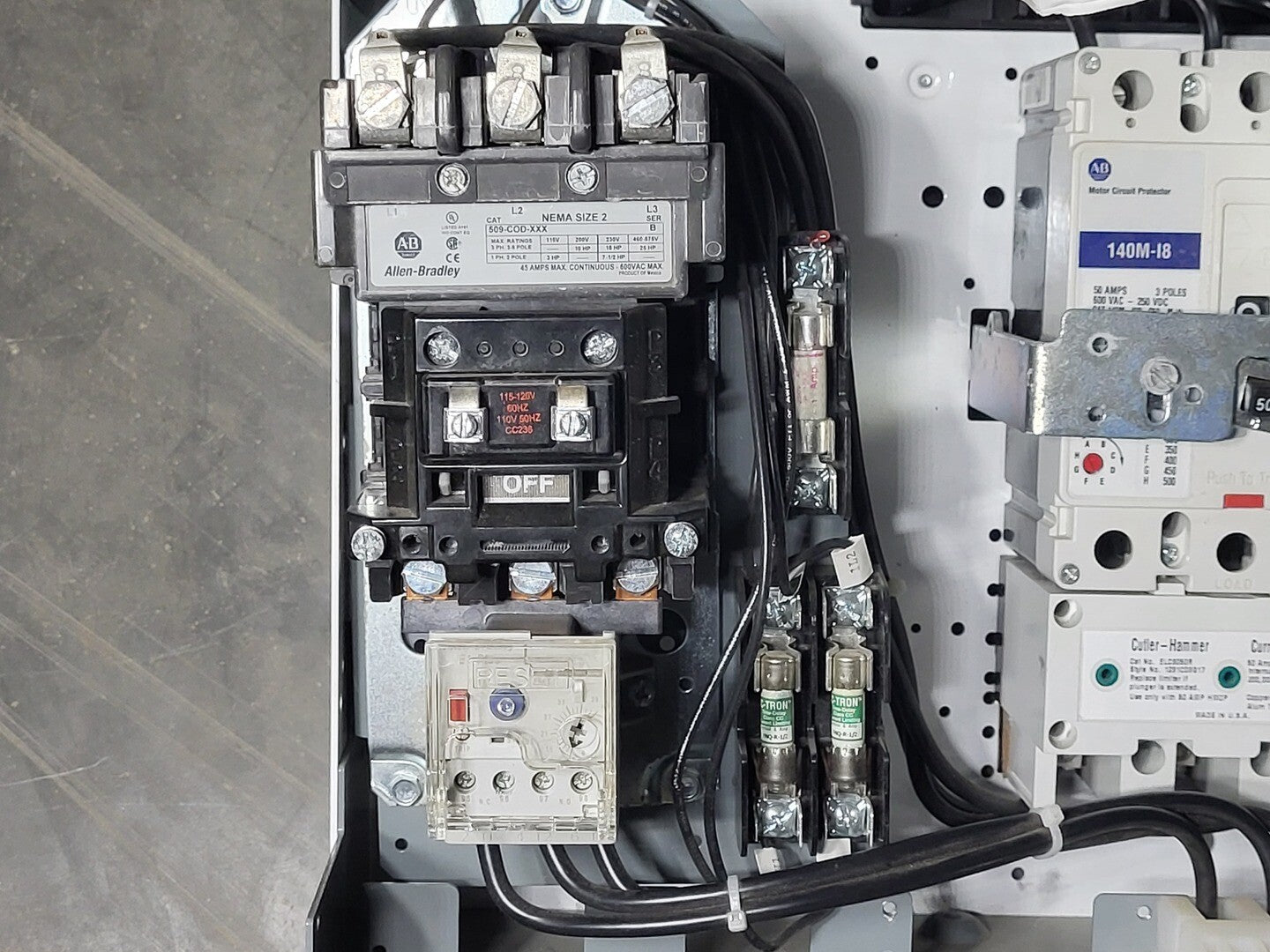 25 hp 600 volts Starter 509-COD-XXX w/ relay, breaker and fuses