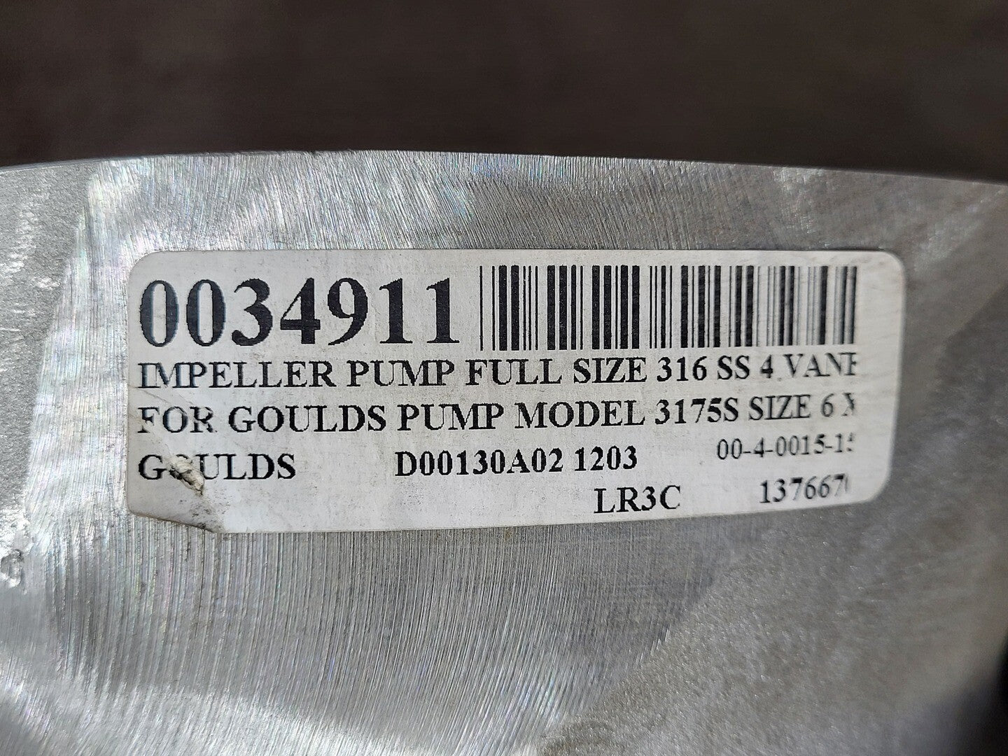 4-Vane Impeller Full Size 316SS for 3175S Pump, Size 6x8-14