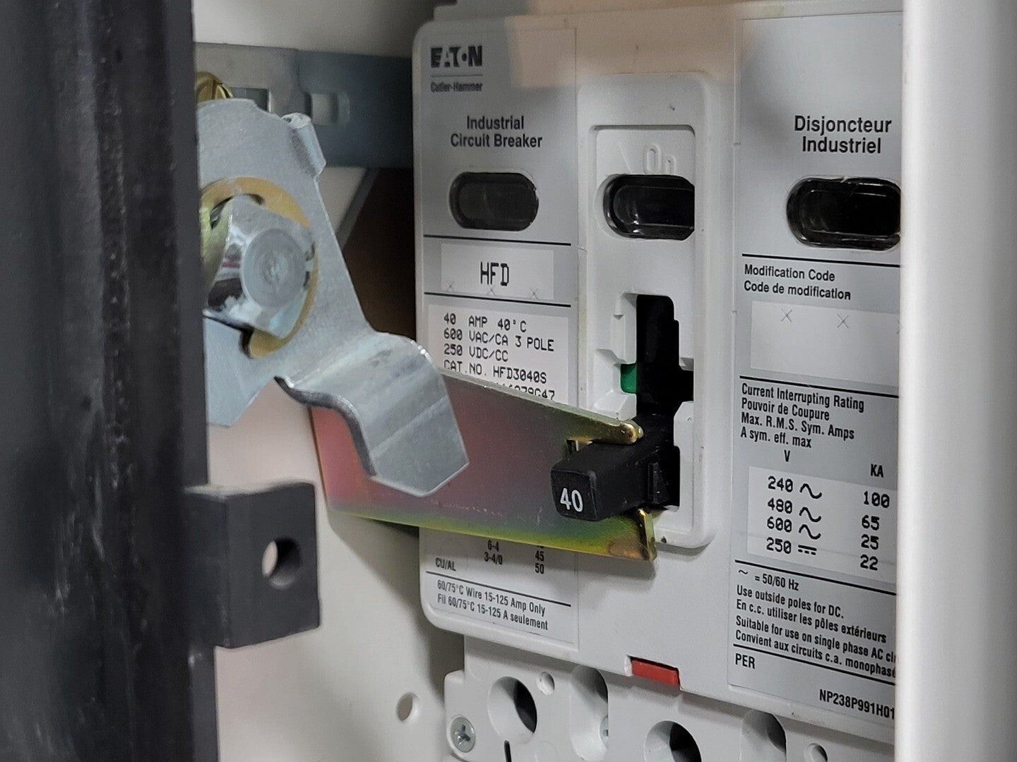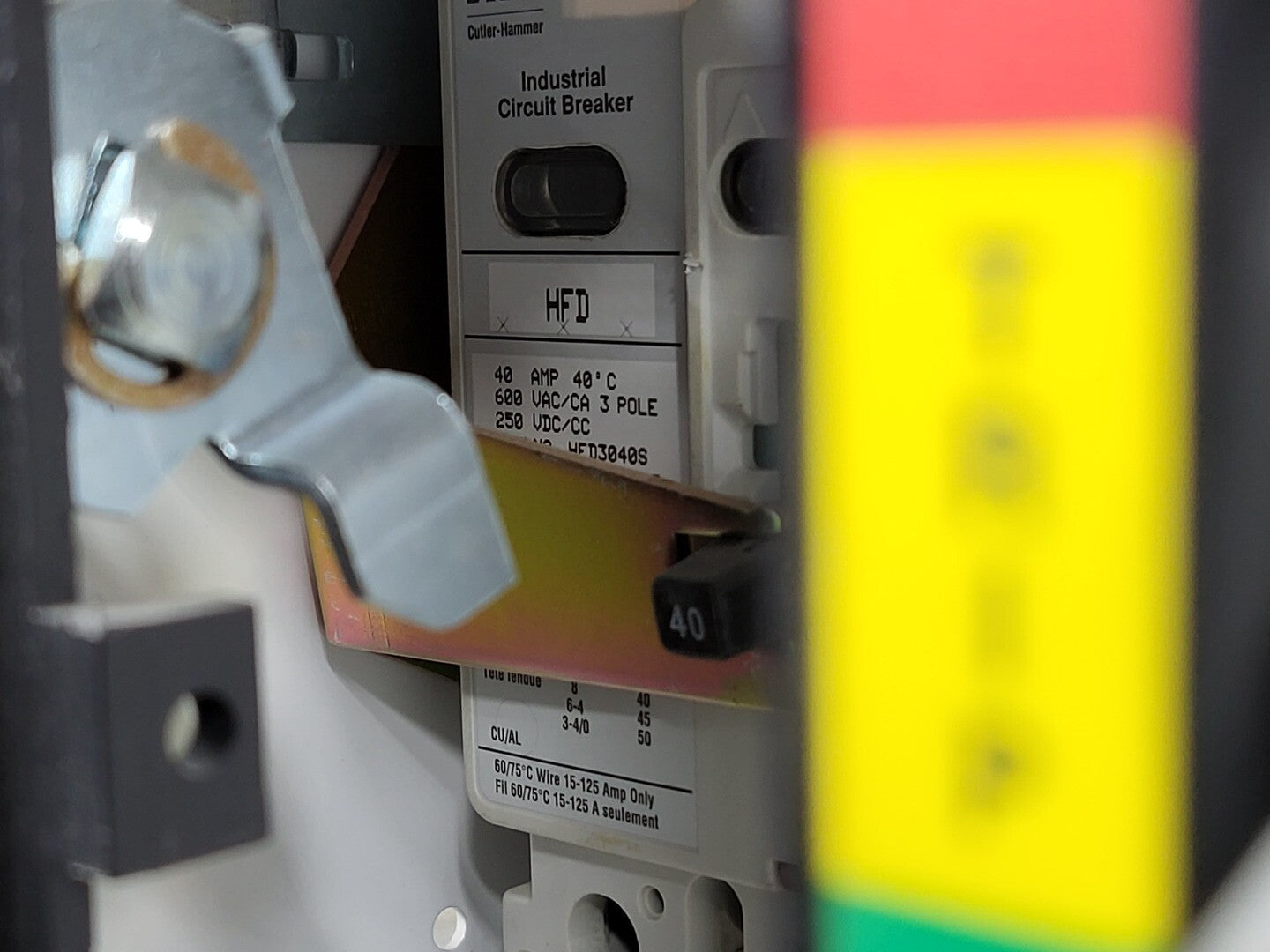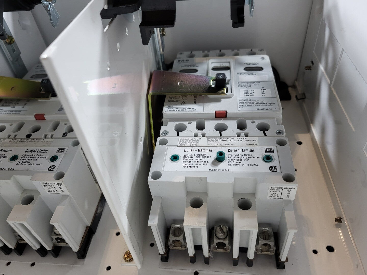 **Fits 2100 MCC Frame Circuit Breaker Maker: Cutler Hammer Model: HFD3040S Voltage: 600V Amps: 40/40 amps Poles: 3 Current Limiter Maker: Cutler Hammer Model: LFD3070R Used with: 15-70A |