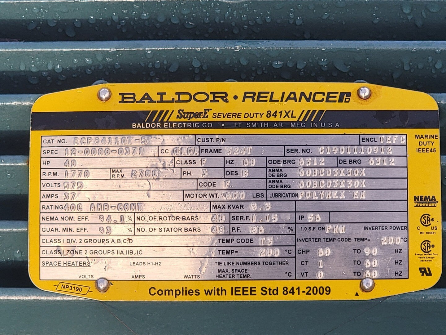 40 hp, 575 volts, 1770 rpm, 324T Severe Duty Motor ECP84110T-5