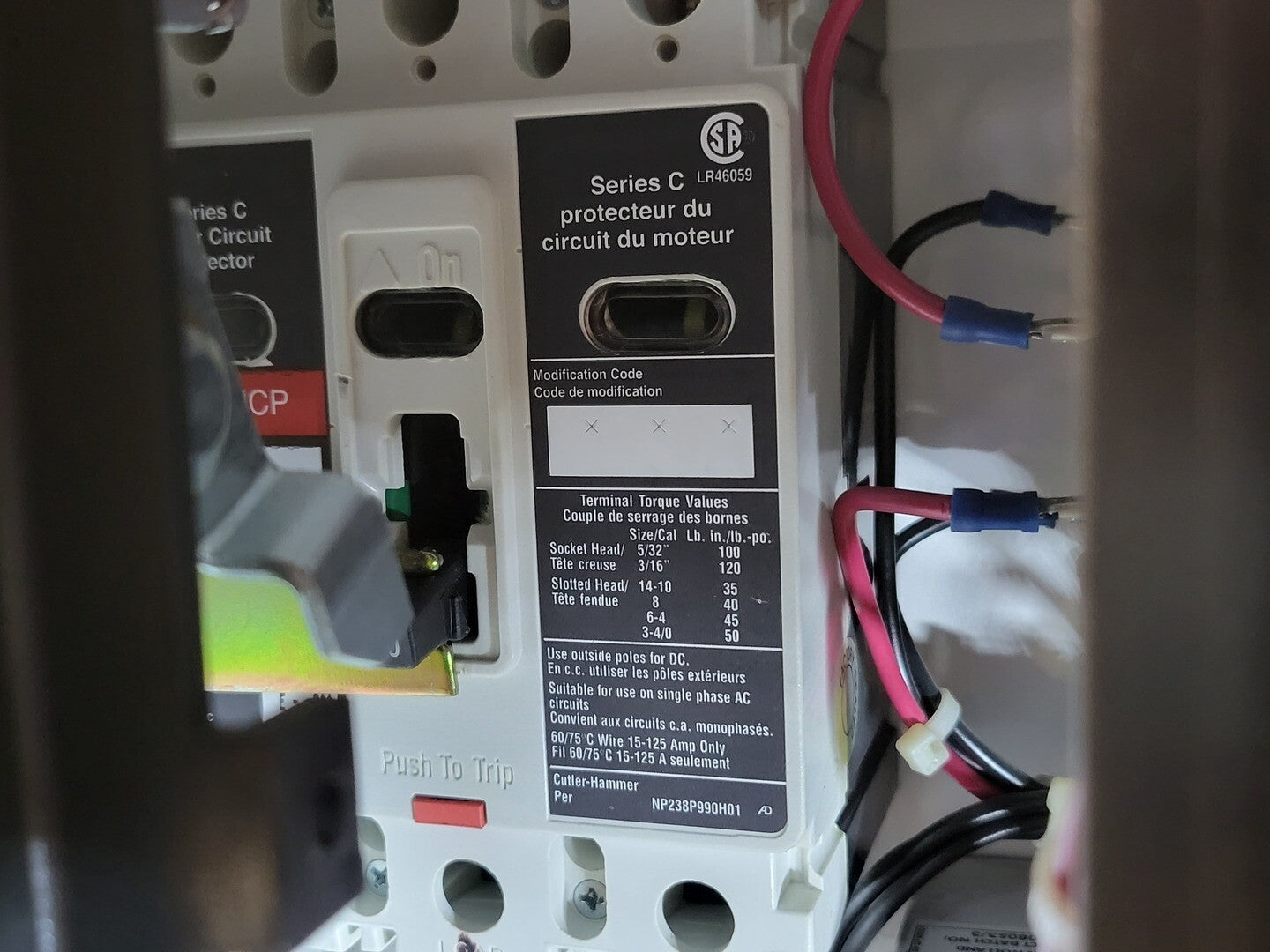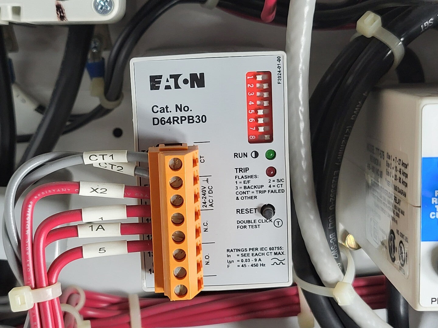 **Fits 2100 MCC Frame Circuit Breaker Maker: Eaton Model: HMCP Voltage: 600V Amps: 100 amps Poles: 3 Ground Fault Relay Maker: Eaton Model: D64RPB30 Overload relay: 24-240 Vac/dc Motor Saver Electronic Overload Relay Maker: Eaton Model: E777-575 Voltage: 450-600VAC Phase: 3 Transformer Maker: MCi Model: 5642-14-120-00 VA: 200VA Primary: 600V Secondary: 120V Contactor Maker: Eaton Model: CN15KN3 Size: NEMA 3 Amp: 90A Volt: 600V |