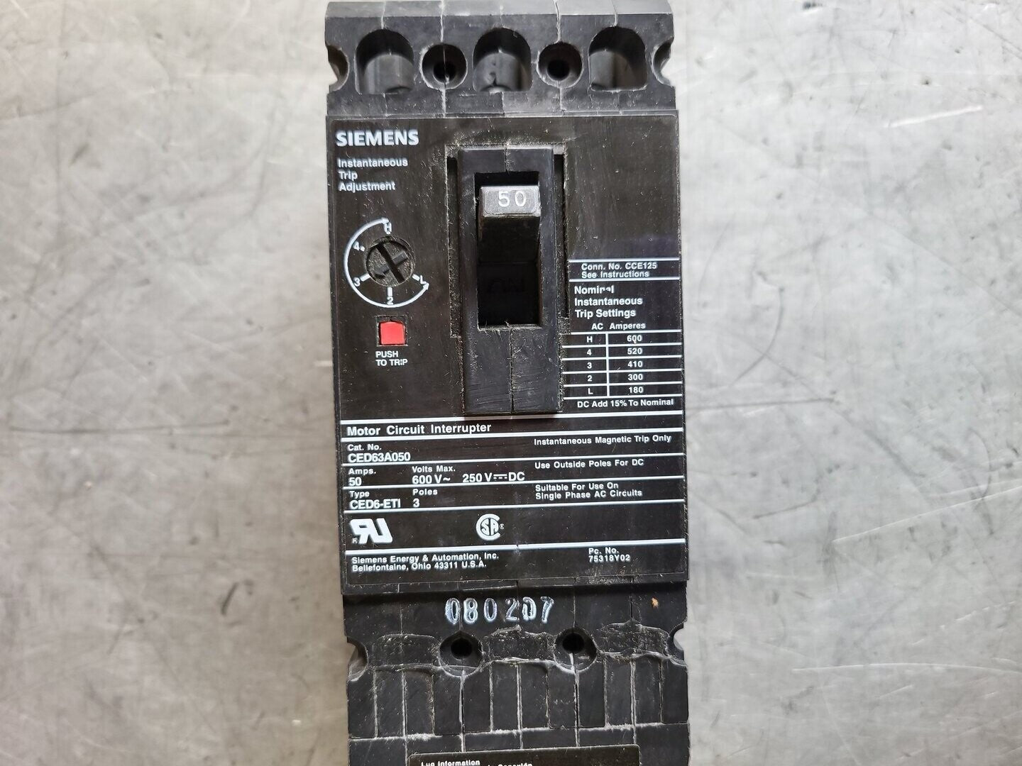 Disyuntor de caja moldeada de 3 polos y 50 amperios CED63A050