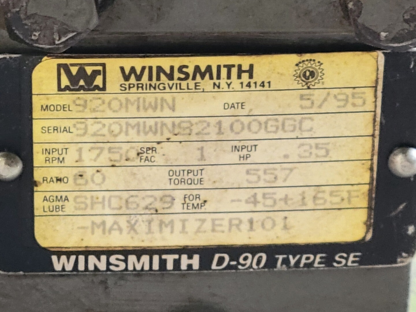60:1 Ratio, 0.35 hp Gear Reducer 920MWN