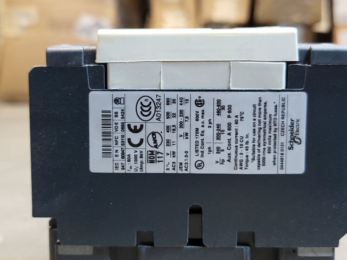 60 Amp, 3 Pole, 1 NO+1 NC, 110 volts Contactor LC1D40F7